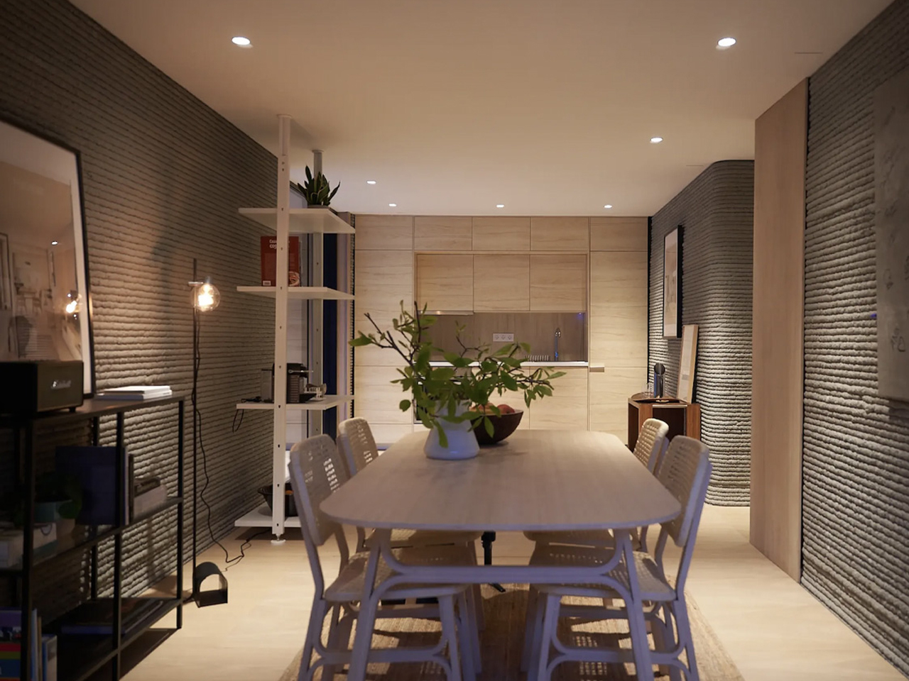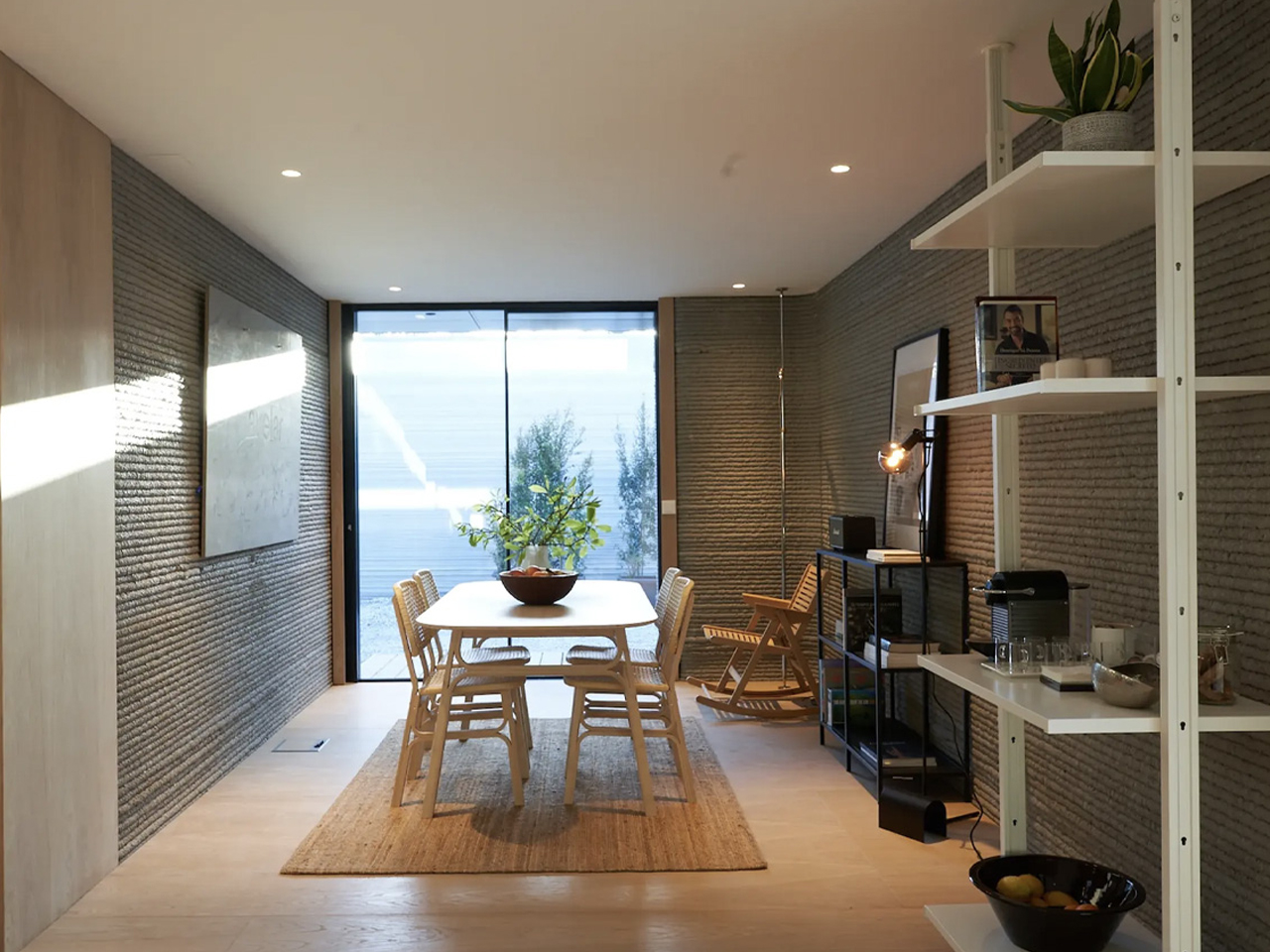 Une fois l’impression terminée, des méthodes de construction traditionnelles ont été utilisées pour installer le toit, les fenêtres, les portes et les équipements intérieurs, portant le délai de construction total à moins de deux mois. La maison présente des murs en béton nervuré qui expriment clairement son origine imprimée, ainsi qu’un agencement simple et efficace comprenant une cuisine centrale, un coin repas, un espace de vie, une salle de bain et deux chambres. Bien que minimal dans sa finition, le projet priorise l’accessibilité et l’efficacité. Havelar considère ce prototype comme une base pour élever la production et passer à des matériaux alternatifs, avec une ambition à long terme d’atteindre la construction carboneutre.