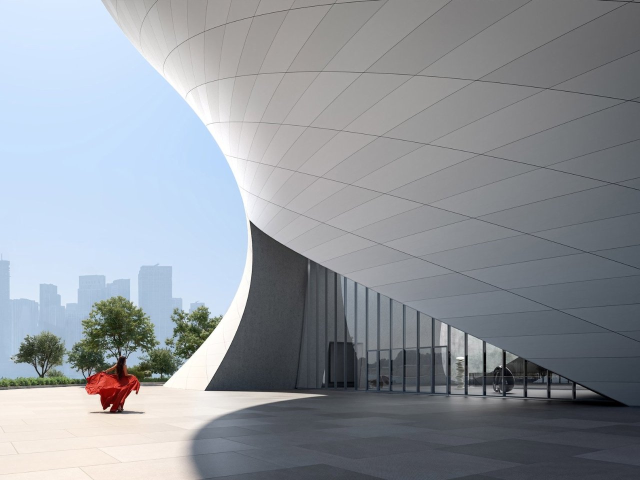 Le musée d’art de Dubaï par Tadao Ando flotte au-dessus du creek d’eau salée de l’émirat, s’inspirant du patrimoine de la plongée aux perles de Dubaï. Sa silhouette distinctive et son intégration avec le patrimoine maritime créent une expérience architecturale mémorable, transformant la visite du musée en une expérience intime.