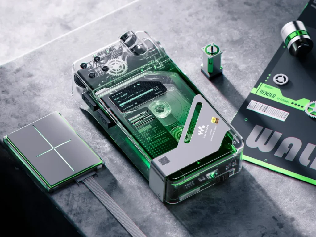 Ce concept de enregistreur à cassette transparent capte l’essence du rétro-futurisme avec des éléments modernes. En alliant la satisfaction tactile des médias analogiques à une transparence visuelle fascinante, ce Walkman met en avant ses composants mécaniques. Les rouages et les rouleaux exposés révèlent le mécanisme en pleine action, créant une expérience hypnotique pour l’utilisateur. Le passage fluide entre matériaux anciens et intelligence numérique souligne une fusion harmonieuse des époques.