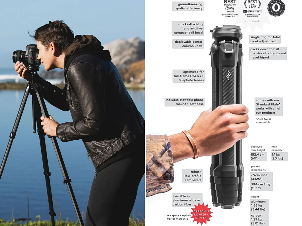 Les trepieds traditionnels se montrent encombrants. Le trépied de voyage de Peak Design change cette perception grâce à un design compact qui offre à la fois force et portabilité. Construit en fibre de carbone, il reste léger tout en pouvant supporter des charges importantes.