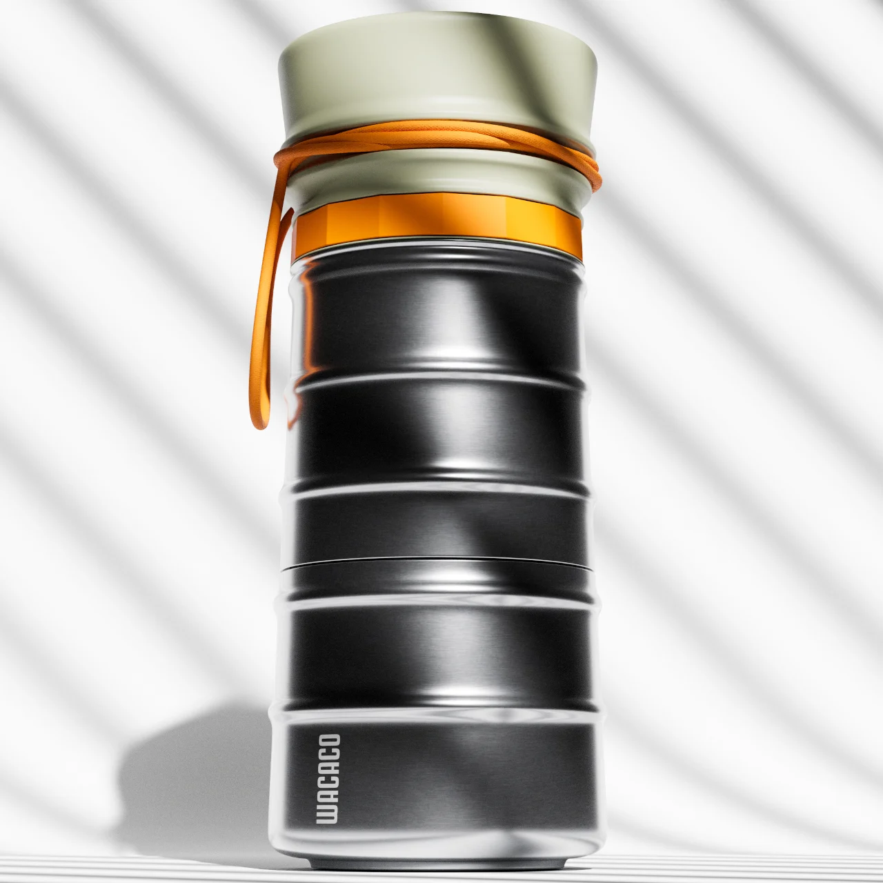 Son extérieur strié assure une prise sécurisée tout en s’intégrant facilement avec vos autres équipements de voyage. Un cordon flexible permet de l’accrocher à votre sac à dos, la rendant véritablement portable. Ce mug maximisé optimise l’espace, tout en parfaitifiant votre café, que ce soit à l’aéroport ou en pleine nature.
