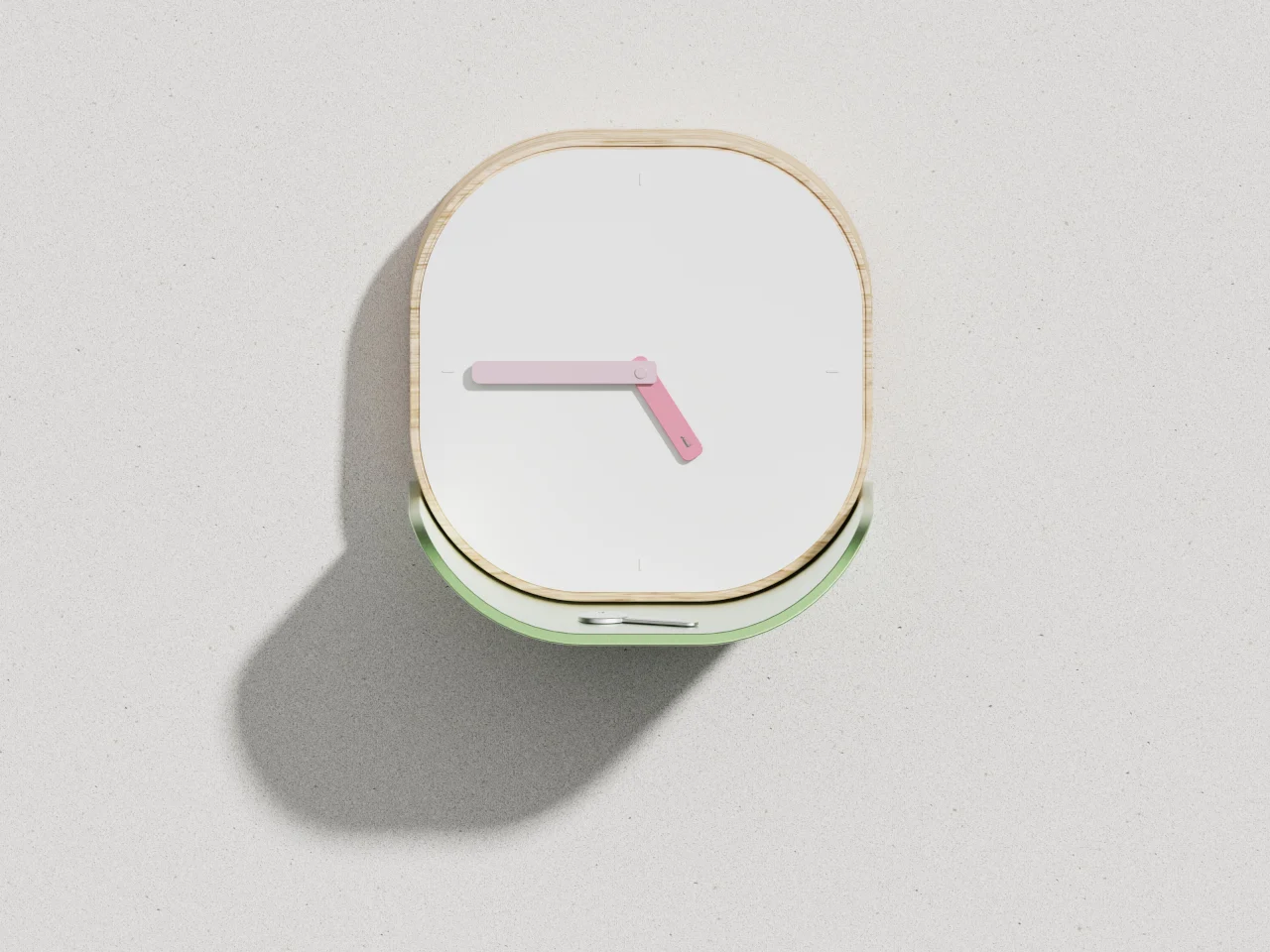L’horloge Lotus s’inspire de la nature de manière fonctionnelle. Elle intègre un plateau en métal courbé sous son cadran, parfait pour accueillir des clés, des pièces de monnaie, ou d’autres objets du quotidien. Le cadre en bois aux coins arrondis et le cadran blanc simplifient la lecture de l’heure. Les grandes aiguilles s’harmonisent avec la finition du plateau, unifiant les deux fonctions dans une seule déclaration visuelle.