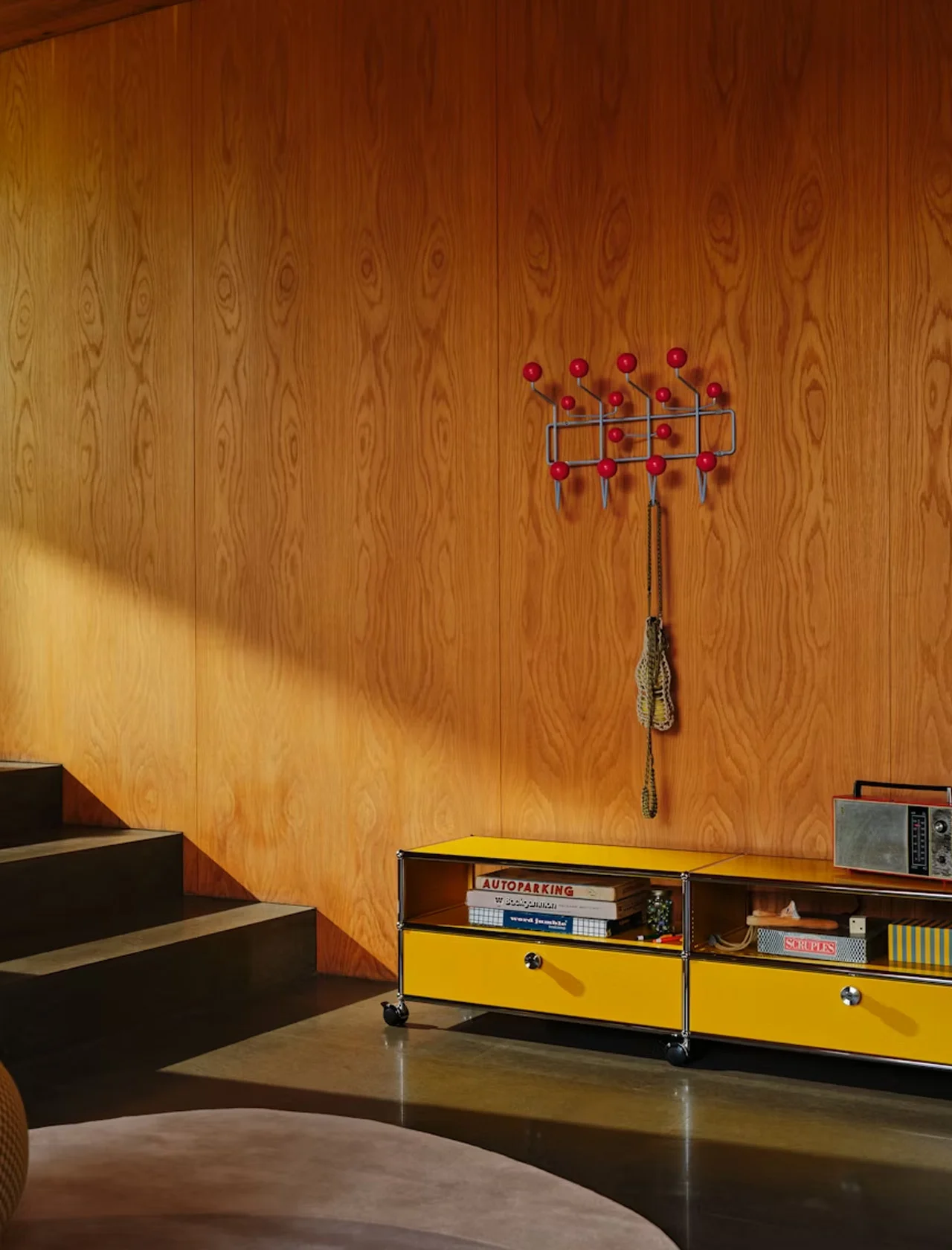 L’Hang-It-All exploite l’espace mural, transformant le rangement utilitaire en une pièce décorative. Destiné à encourager les enfants à accrocher leurs affaires, il est devenu un classique qui apporte de la chaleur à des intérieurs minimalistes.