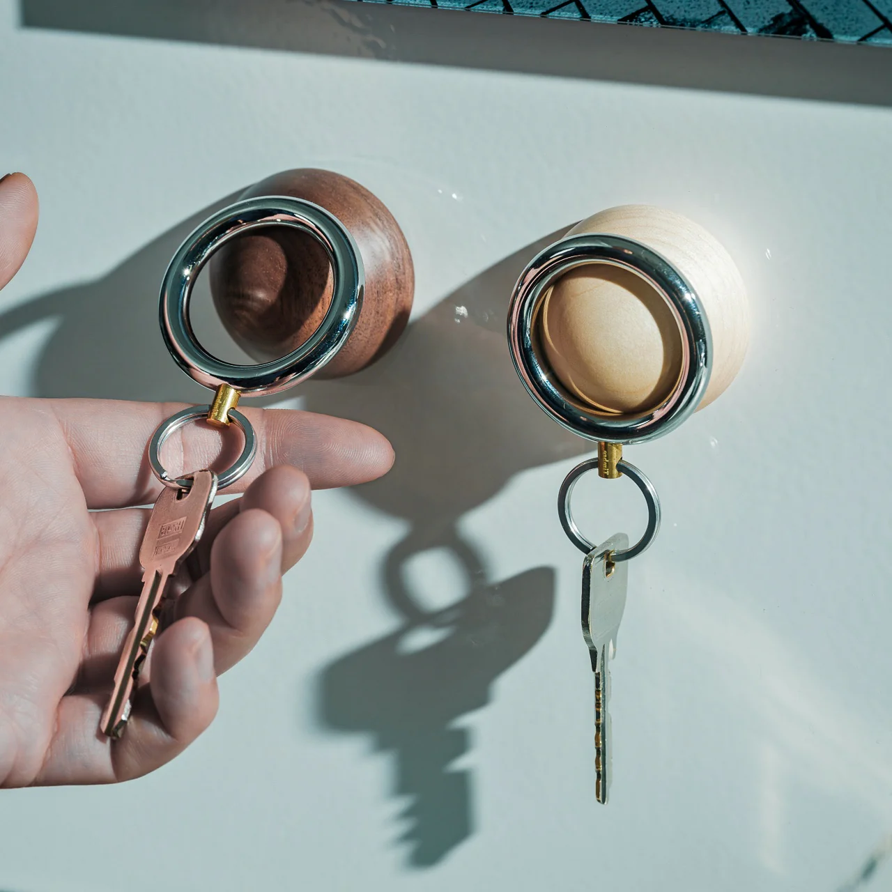 Le Porte-clés Wakka transforme l’acte de poser vos clés en une expérience agréable. Le système allie un anneau de clé en acier inoxydable, fer et laiton avec une base en bois élégante. L’aimant néodymium maintient l’anneau fermement en place, et le bruit distinct lors de la séparation contribue à ancrer cette habitude.