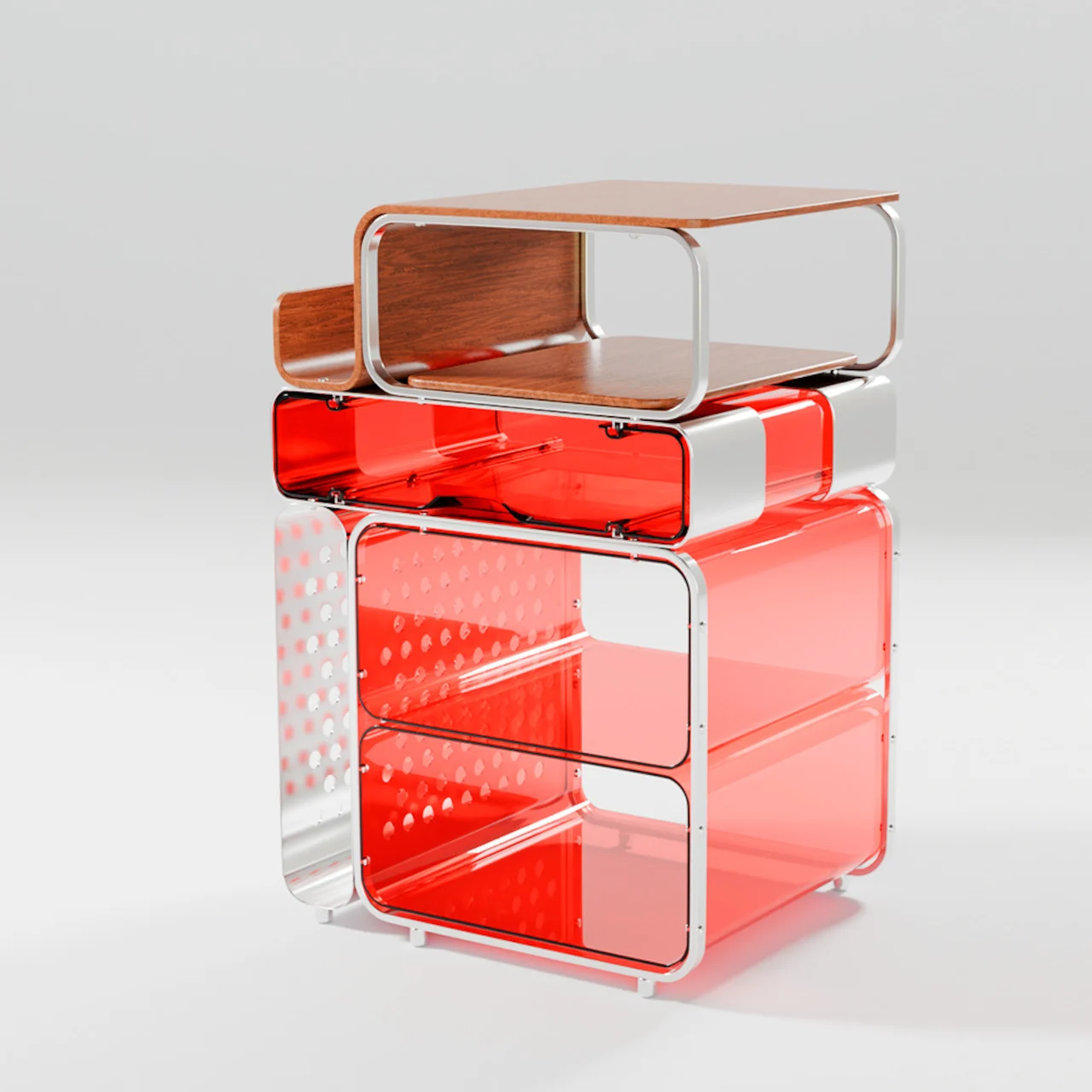 Le système d’étagères TUMBA répond à la frustration des meubles en kit avec des dimensions fixes. Ce système modulaire propose des modules empilables fabriqués en polymère recyclé, pouvant se verrouiller sans outils. Sa transparence et sa conception colorée rendent le rangement attrayant et adaptable.