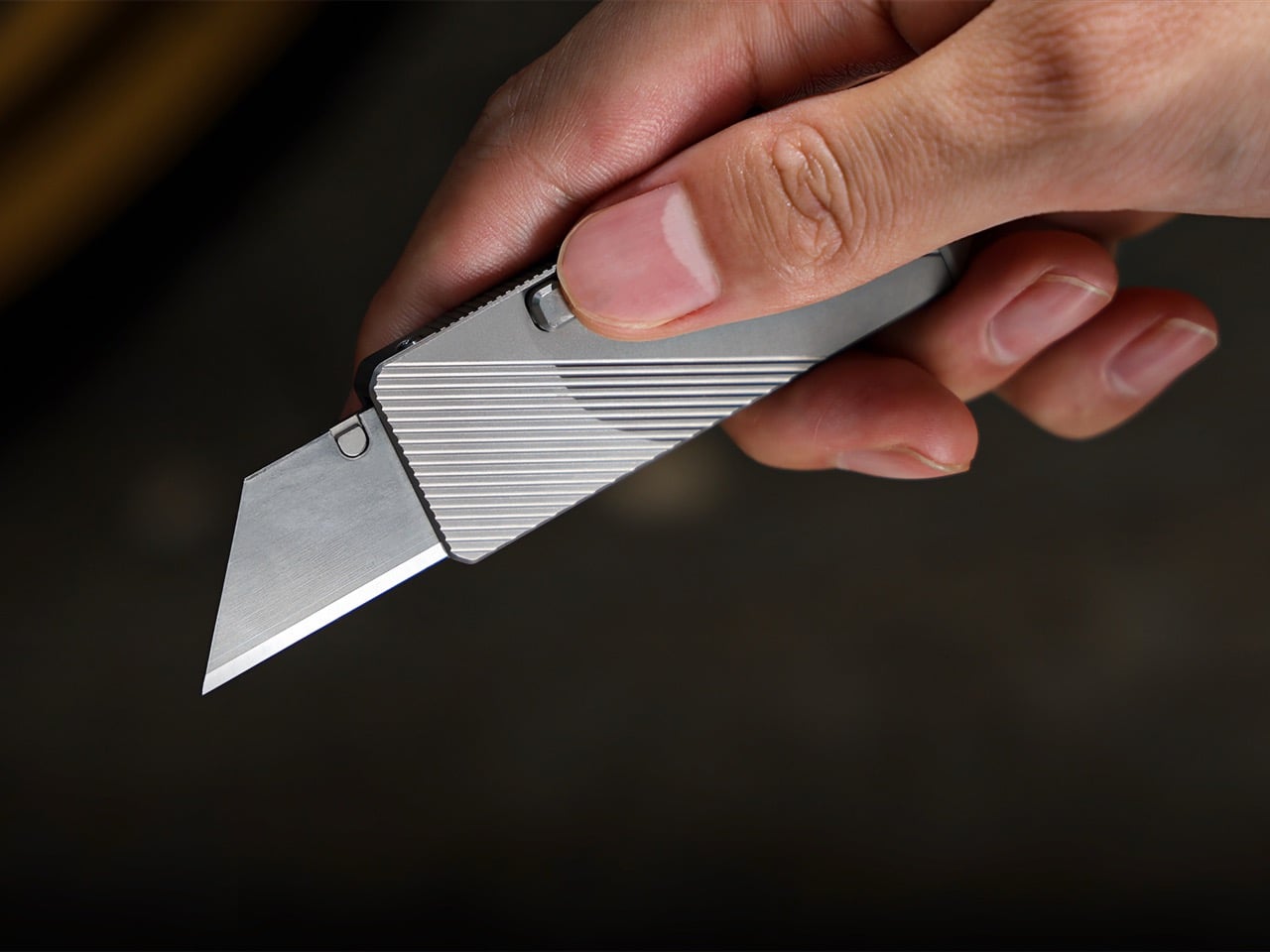 Le CraftMaster utilise un design minimaliste, réinventant l’esthétique des couteaux utilitaires. Avec son corps métallique, il est à la fois élégant et robuste. Le mécanisme de déploiement avec un bouton rotatif permet de contrôler la lame avec précision.