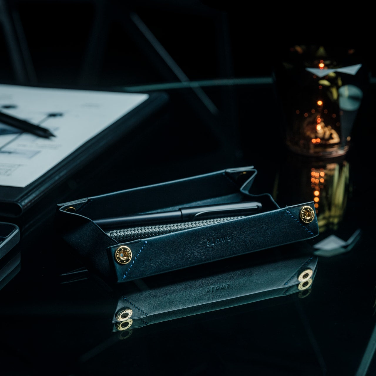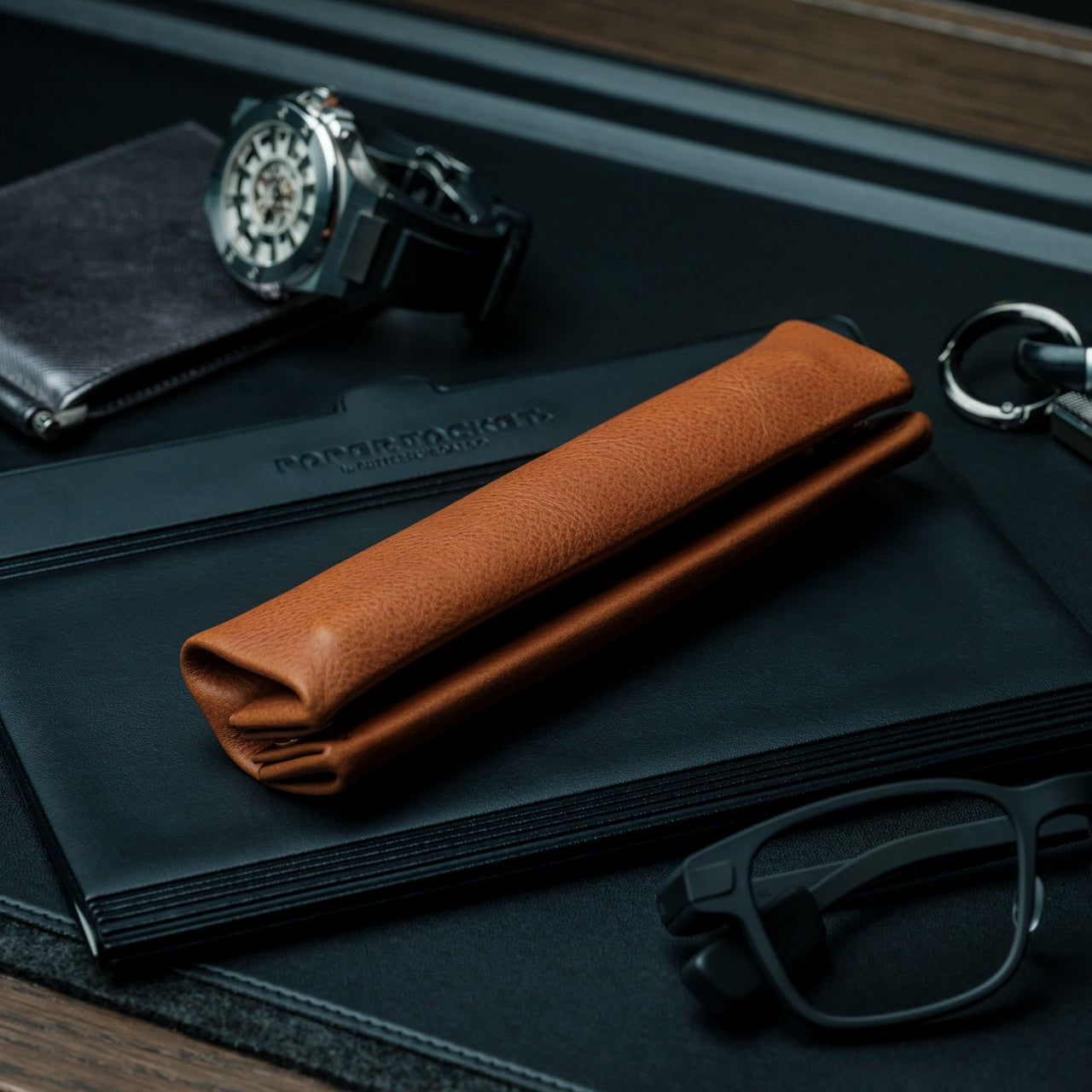 Ce superbe étui en cuir transforme votre bureau en un espace de travail bien organisé. Fabriqué en cuir italien tanné végétal, il permet de ranger vos instruments d’écriture avec élégance. L’astuce de conception réside dans son mécanisme de pliage, qui permet de créer un plateau sans encombrer l’espace. L’intérieur creux reste fin même plein, ce qui facilite son transport. Ce cadeau fera plaisir à tous ceux qui apprécient l’art d’écrire et le soin apporté à leurs outils.