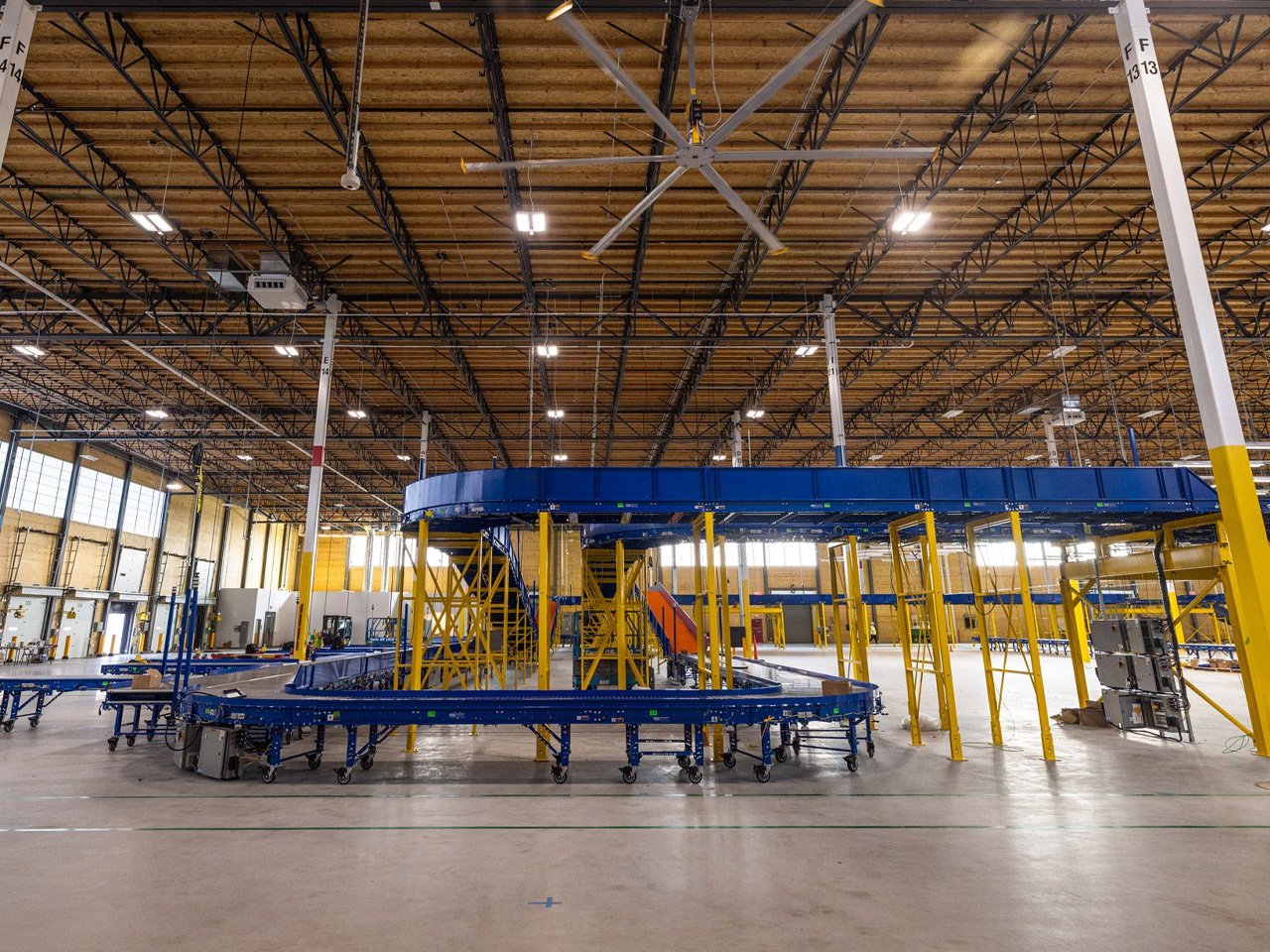 Ce bâtiment s’étend sur 39 acres à proximité de l’aéroport municipal d’Elkhart et emploie plus de 200 travailleurs qui trient des colis sous des poutres en bois apparentes, loin des grottes de béton illuminées par des néons. La construction en bois massif réduit considérablement les émissions de carbone par rapport aux méthodes traditionnelles, car le bois stocke le carbone au lieu de l’émettre lors de sa fabrication.