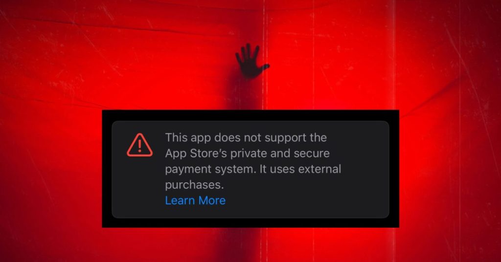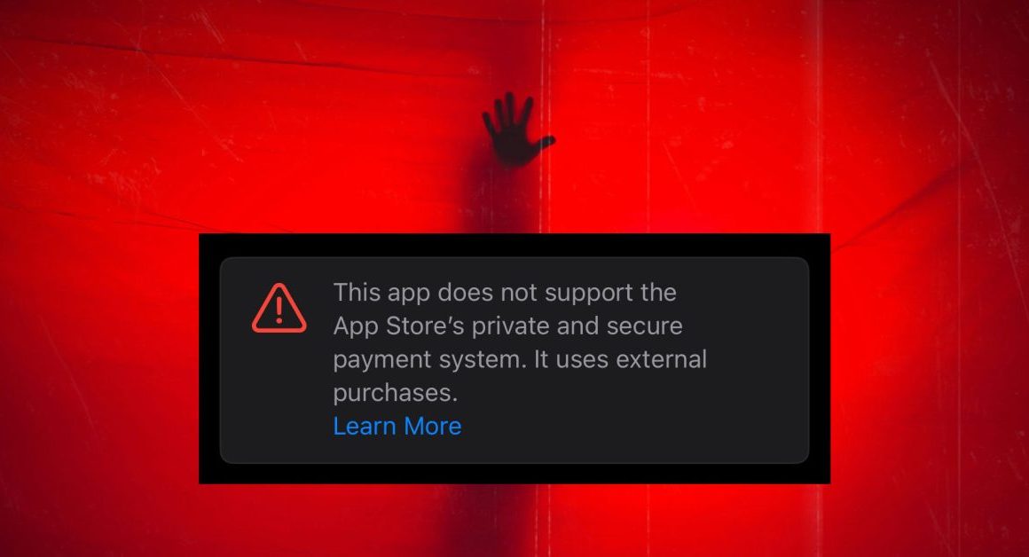 Apple a ajouté un avertissement visible sur les applications utilisant des systèmes de paiement tiers. Cela semble violer ses propres directives applicables aux applications et pourrait également enfreindre la législation antitrust de l’UE.