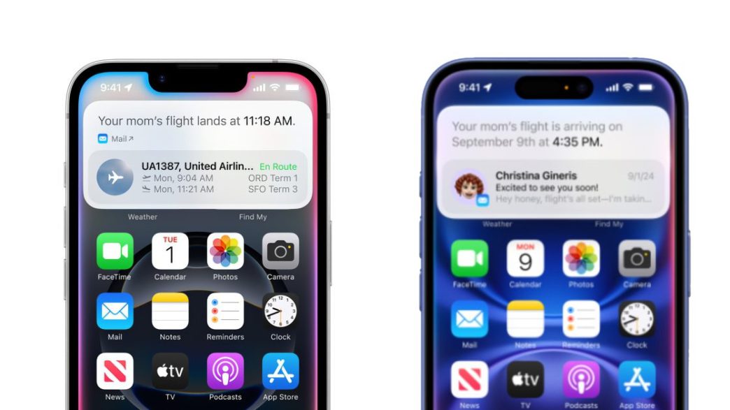 Apple a mentionné des fonctionnalités Siri telles que la compréhension du contexte personnel, la prise de conscience à l’écran, et des actions dans l’application. Ces fonctionnalités permettront aux utilisateurs de trouver facilement des informations dans les conversations, comme des numéros de vol ou des recommandations de livres, en scannant à travers Messages, Mail, et d’autres applications.
