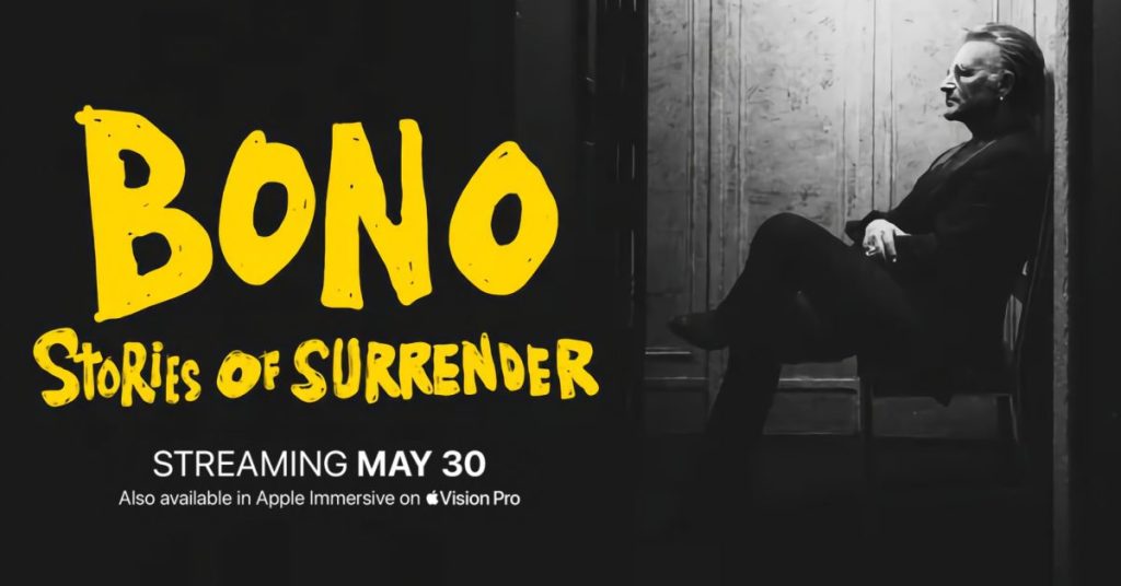Apple TV+ a annoncé aujourd’hui un nouveau film documentaire intitulé "Bono: Stories of Surrender", qui sera diffusé dans le monde entier le 30 mai. Il sera également disponible en format 3D immersif, visible avec le casque Apple Vision Pro.
