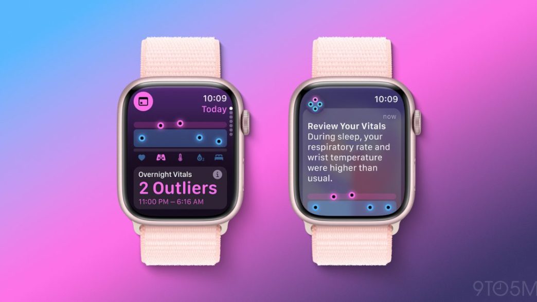 L’Apple Watch Series 10 introduit une nouvelle application appelée Vitals, qui suit des métriques nocturnes telles que la fréquence cardiaque, le rythme respiratoire, la température corporelle, l’oxygène dans le sang et le sommeil. Chaque matin, elle fournit un rapport alertant l’utilisateur si l’une de ces métriques est anormale.