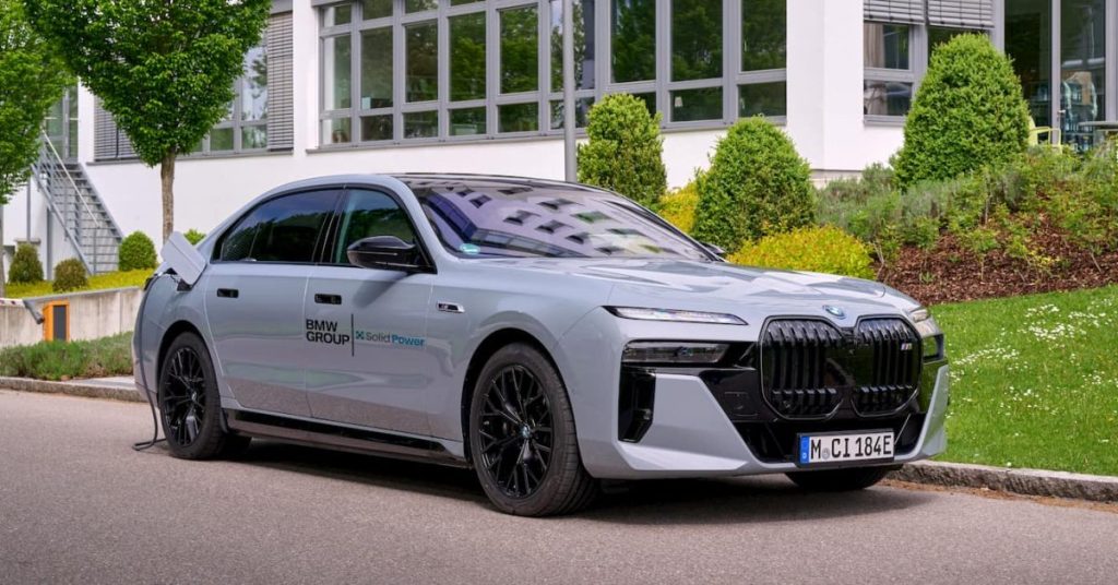 [Image de l’i7 de BMW équipé de cellules de batterie tout-solide]
