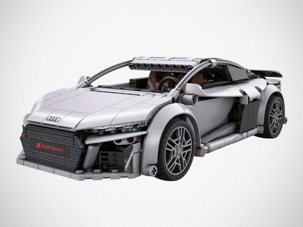La R8 est une véritable maîtrise de la construction de briques automobiles. À l’échelle 1:14, elle mesure environ 35 centimètres de long et est composée d’environ 1 600 pièces. Les proportions respectent la posture agressive et basse de la voiture réelle, avec un avant qui capture la large calandre emblématique de l’Audi R8 et des phares fins. CaDA n’a pas seulement approximé l’apparence ; ils ont obtenu une licence officielle d’Audi, ce qui signifie que tous les logos, la marque Sport et les détails sont authentiques.