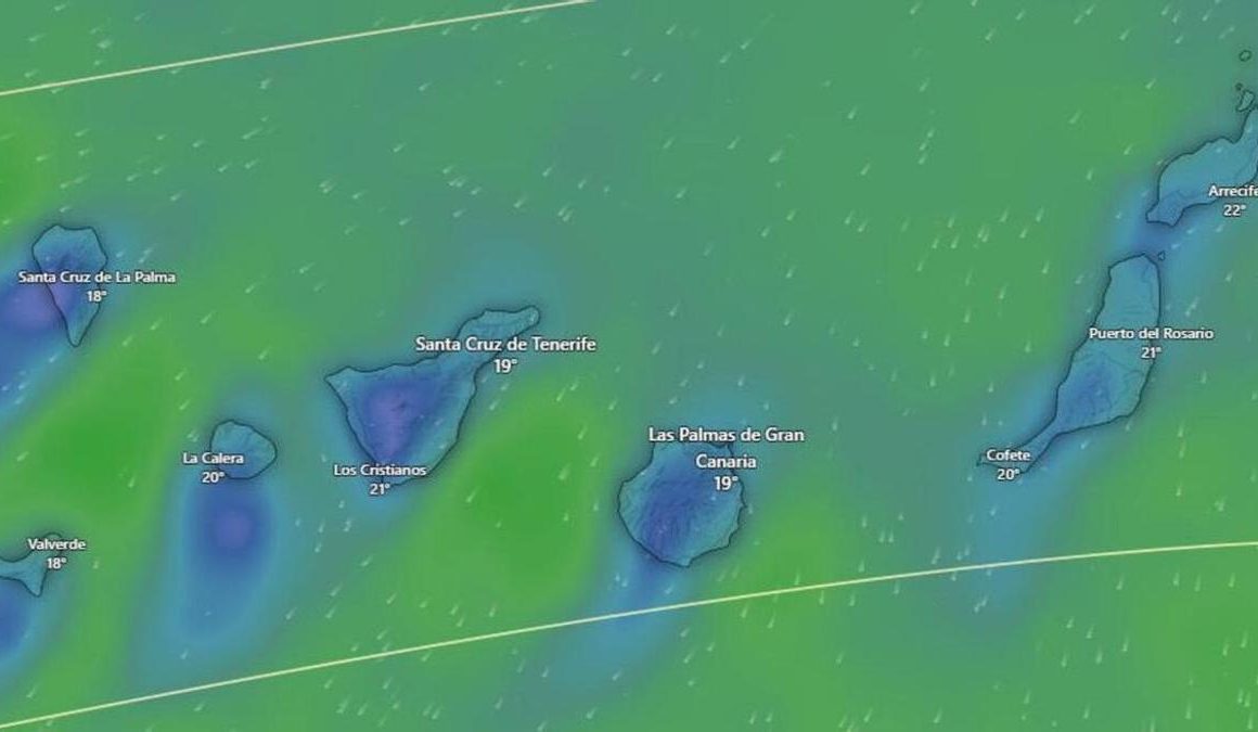 À Gran Canaria, un environnement peu nuageux ou dégagé est prévu, avec quelques périodes nuageuses sur la côte nord-est durant la nuit. La calima sera significative, commençant dans les médianes et s’étendant par la suite vers les côtes, avec une incidence particulière sur les versants est et sud dès les premières heures du jour.