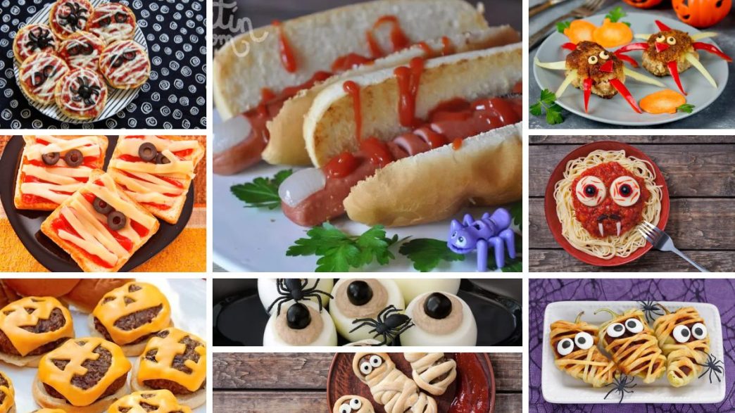 Nous vous proposons 9 recettes salées très faciles à réaliser : pizzas amusantes, piments farcis à la viande et au feuilleté, œufs terrifiants, hamburgers d’Halloween, croquettes transformées, momies boulettes, pâtes amusantes, sandwich momie et hot-dogs avec doigts. Toutes ces recettes sont non seulement délicieuses, mais aussi divertissantes.