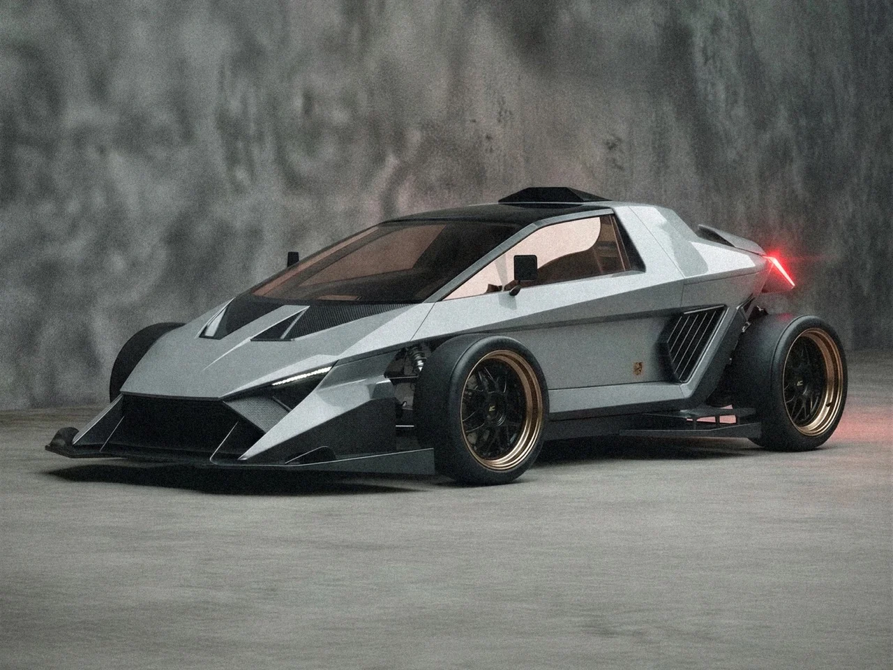 Le langage de design s’inspire directement de l’époque où Marcello Gandini dessinait des supercars avec un rapporteur et une apparent vendetta contre les lignes courbes. Chaque surface de ce buggy ressemble à une pièce de métal en feuille pliée par une personne ayant étudié l’origami, choisissant volontairement de rejeter toute subtilité. Le profil en coin, les panneaux de carrosserie angulaires, et l’impression générale de l’engin évoquent une époque où les designers cherchaient avant tout à créer des véhicules à l’apparence incroyablement rapide, même à l’arrêt.
