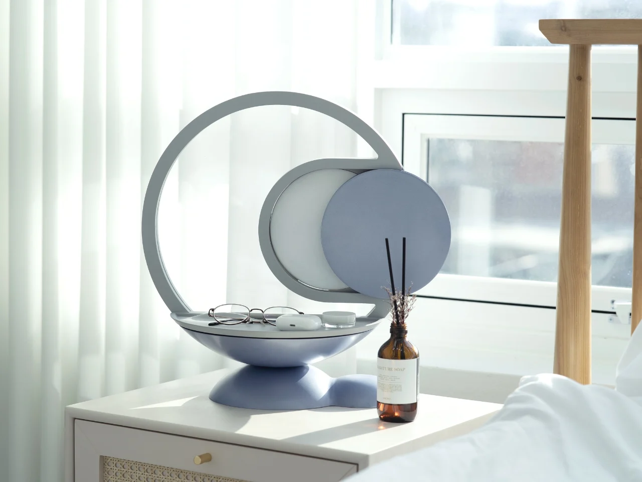La conception elle-même est remarquablement apaisante. Kim a construit l’esthétique autour de courbes douces et de formes circulaires, ce qui est logique pour un objet censé encadrer votre journée. La dernière chose dont vous avez besoin sur votre table de nuit, ce sont des angles agressifs et des lignes dures qui vous fixent avant de vous coucher ou dès le matin.