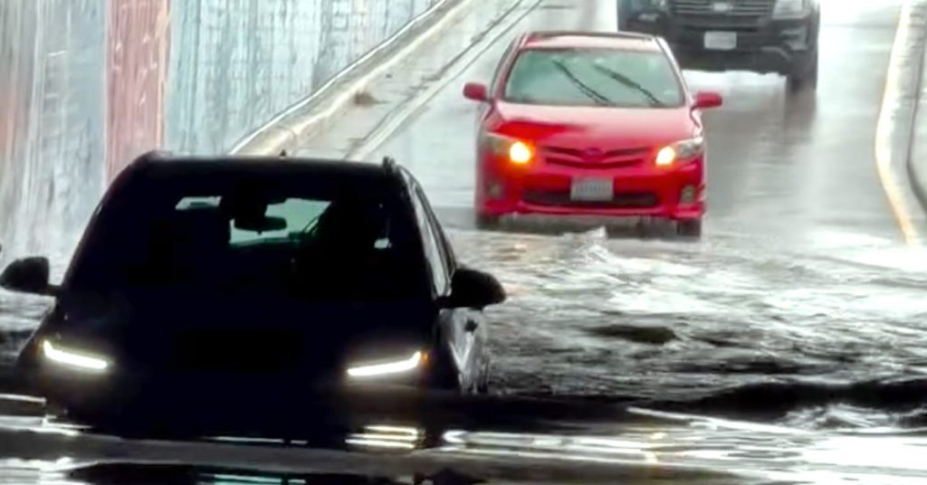 Le propriétaire du Chevy Bolt EUV n’a pas hésité à s’approcher d’un tunnel inondé, où presque un mètre de flotte l’attendait. Face à cette situation, au lieu de chercher un chemin alternatif, le conducteur a décidé d’accélérer, entraînant ainsi sa voiture dans une sorte d’expérience où elle est devenue une "amphi-car".