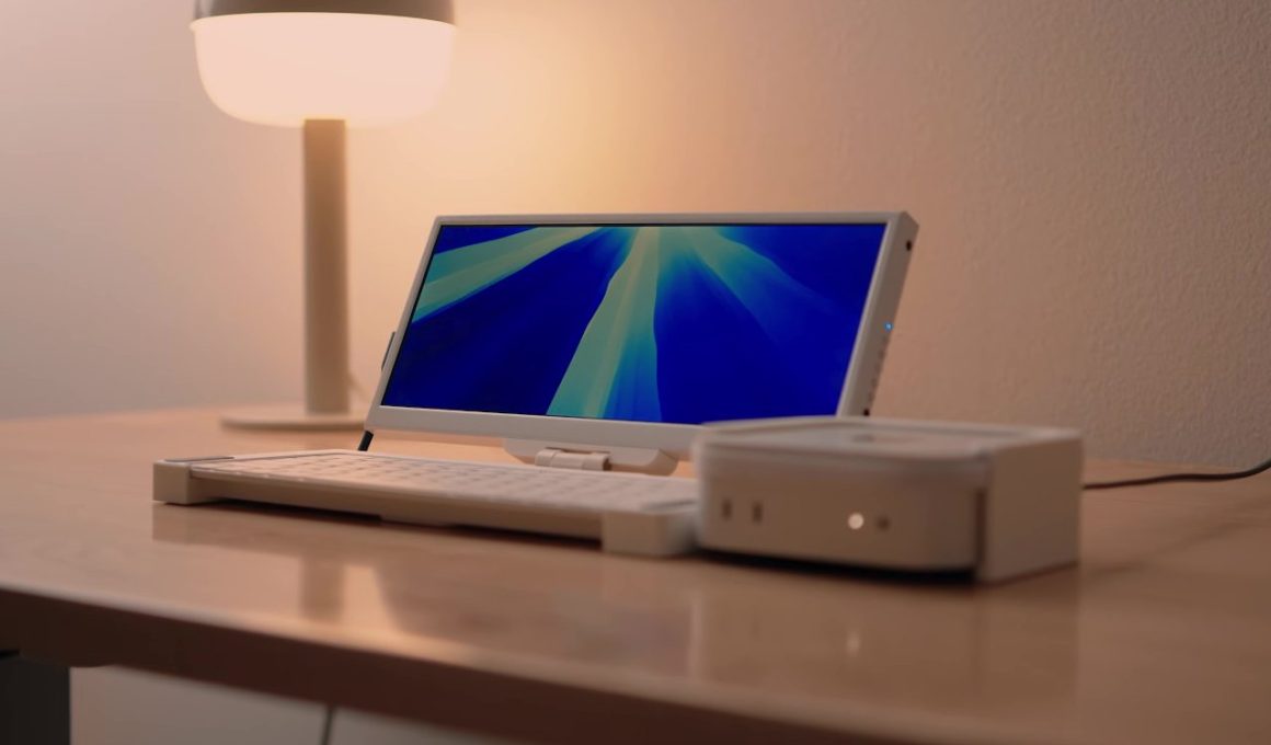 Le projet combine le Mac Mini avec un clavier Apple Magic et un écran ultra-large de 12,3 pouces, créant une unité portable unique.