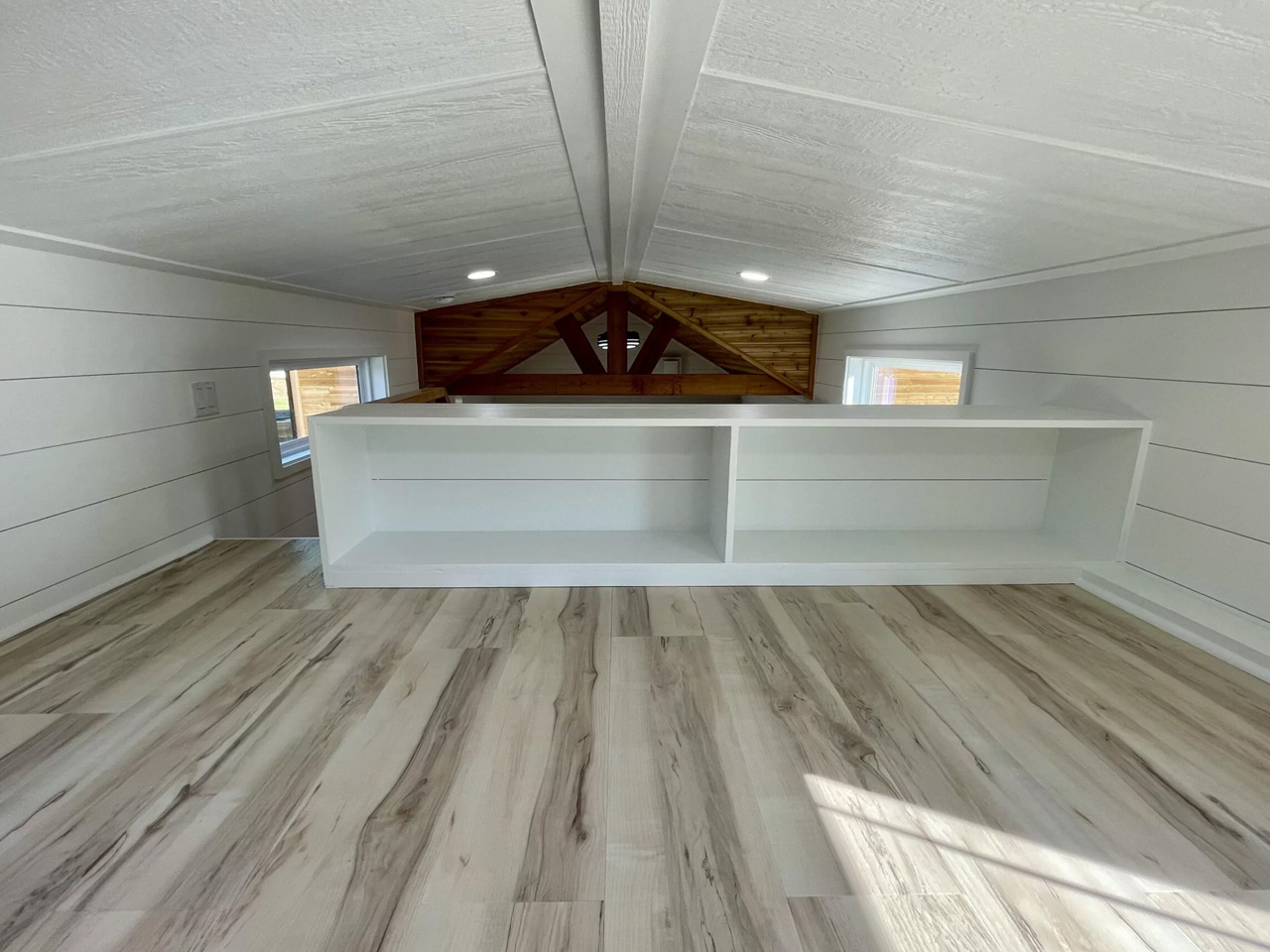 Le plan de la maison comprend deux chambres, un espace de vie ouvert, une cuisine entièrement équipée et une salle de bain. Cette configuration plaît aux couples, aux petites familles ou aux individus ayant besoin d’un espace de travail dédié à côté de leur chambre. L’espace de vie ouvert évite une sensation de pièces déconnectées, tandis que les deux chambres séparées offrent une intimité que les modèles à loft unique ne peuvent pas égaler. La qualité du design va au-delà du simple agencement. Le New Chapter se distingue par ses finitions haut de gamme qui le placent au-dessus des constructions de petites maisons basiques. Les matériaux durables suggèrent que les concepteurs ont imaginé cette maison pour une occupation à long terme plutôt que pour des escapades ponctuelles, tout en combinant des lignes élégantes avec des considérations pratiques pour la résistance aux intempéries et le transport sur route.
