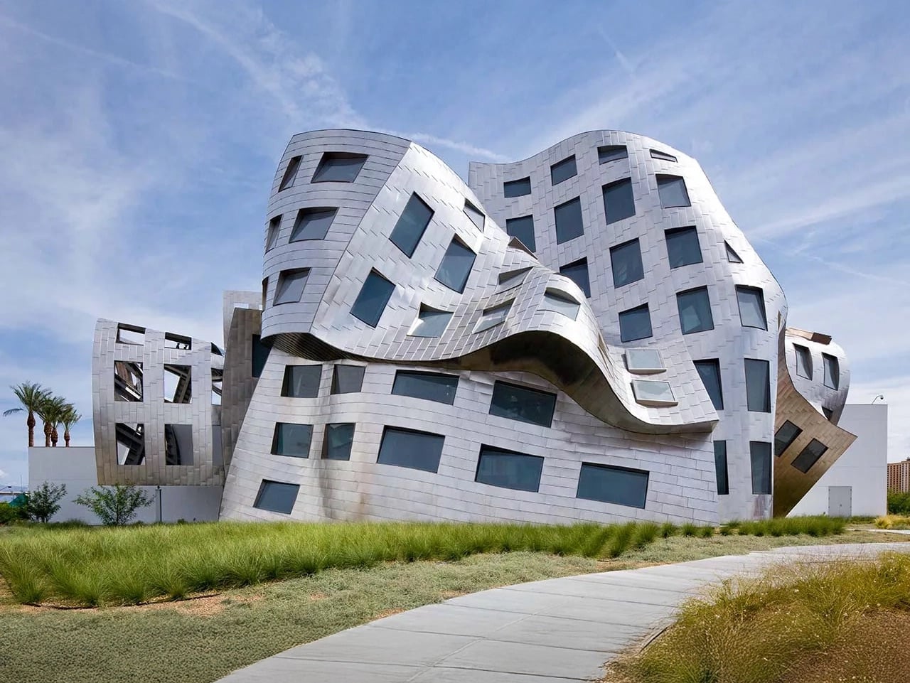 Dans une ville réputée pour ses spectacles flamboyants, le Lou Ruvo Center for Brain Health se distingue par ses formes en acier inoxydable qui se fondent dans le soleil du désert. Le complexe se divise en deux parties distinctes : une aile clinique rectiligne abritant des salles d’examen et un hall d’événements déformé, symbolisant les méandres du cerveau.