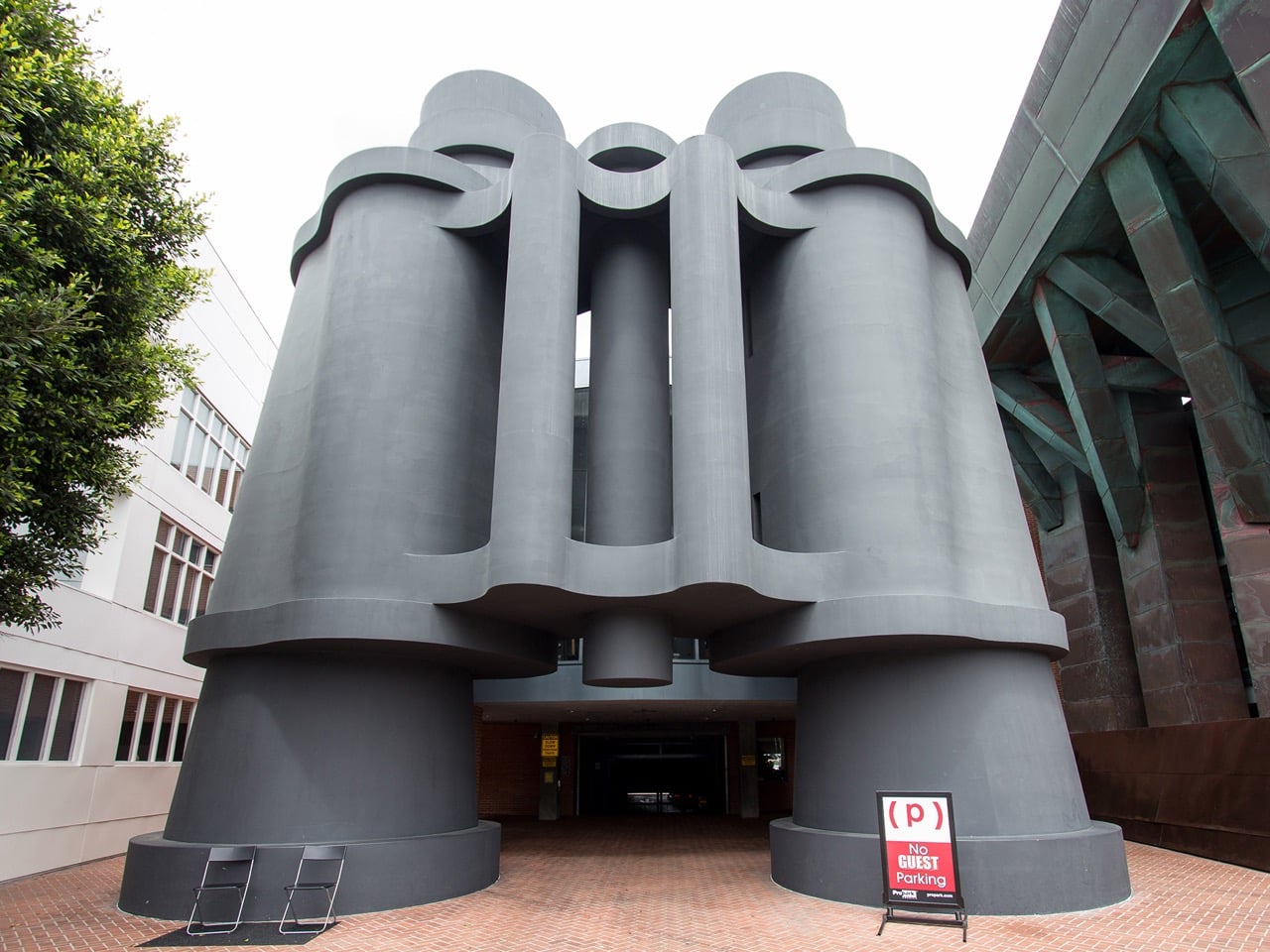 Marqué par sa façade en forme de jumelles monumentales, ce bâtiment de bureaux incarne le côté espiègle de Gehry. L’édifice est un hybride d’architecture et de sculpture, où les jumelles, œuvre originale de Claes Oldenburg et Coosje van Bruggen, constituent l’entrée principale. Passants et voitures traversent les lentilles, transformant un objet familier en un seuil habitable qui moque doucement le sérieux habituellement associé à l’architecture d’entreprise.