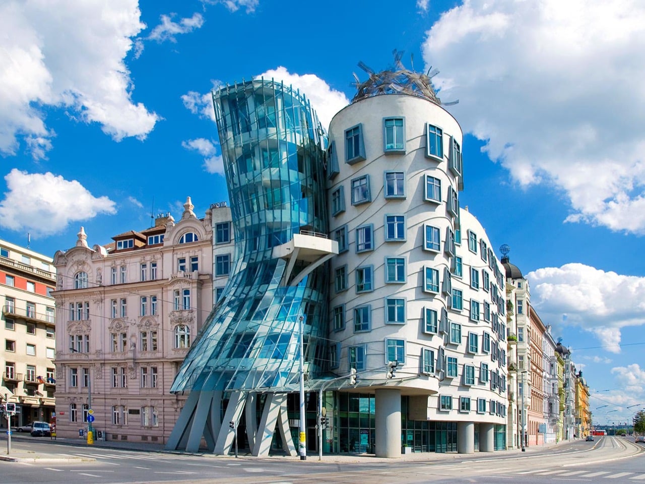 Au cœur de Prague, la Dancing House émerge comme une icône contemporaine. Sa silhouette déconstructiviste, évoquant un couple dansant, contraste délibérément avec les façades baroques et gothiques environnantes, symbolisant l’évolution architecturale de la ville. Le « Fred » en verre s’appuie sur le « Ginger » en pierre, créant une dynamique de mouvement presque cinématographique.