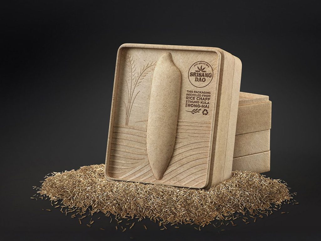 Les coques de riz sont également transformées en emballages durables, une alternative écologique au plastique. Elles sont traitées pour devenir des contenants biodégradables, légers et compostables, idéaux pour l’alimentation et le commerce de détail. Ce processus réduit les déchets plastiques tout en étant sûr et efficace pour les consommateurs.
