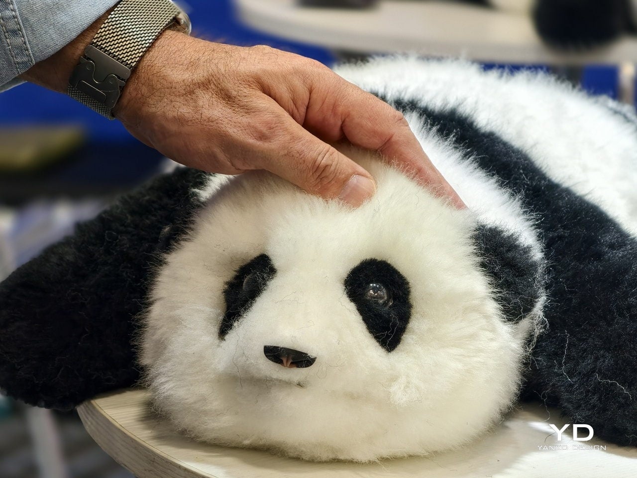 An’An est un panda biomimétique dont la conception repose sur l’idée simple que les gens se sentent plus à l’aise près d’animaux que de machines. Son corps est fabriqué à la main à partir de laine australienne et de peau de mouton pour un confort tactile naturel, invitant à être caressé et pris dans les bras. La forme douce et discrète d’An’An le rend plus proche d’un jouet en peluche que d’un robot de science-fiction.