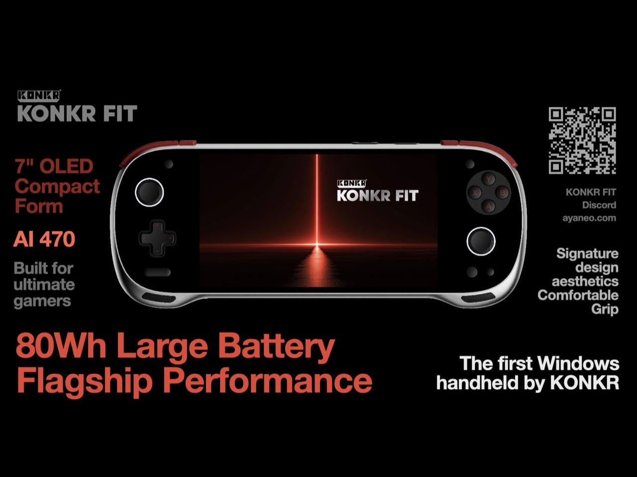 Le Konkr Fit est équipé d’un écran OLED de 7 pouces, une taille supérieure aux écrans de 6 pouces de ses prédécesseurs Android. Ce qui le propulse au niveau supérieur, c’est son processeur AMD Ryzen AI 9 HX 470. Ce choix marque un tournant significatif par rapport aux puces Snapdragon. Avec une batterie impressionnante de 80Wh, ce modèle surpasse même ses concurrents directs comme le Lenovo Legion Go S et le Legion Go 2.