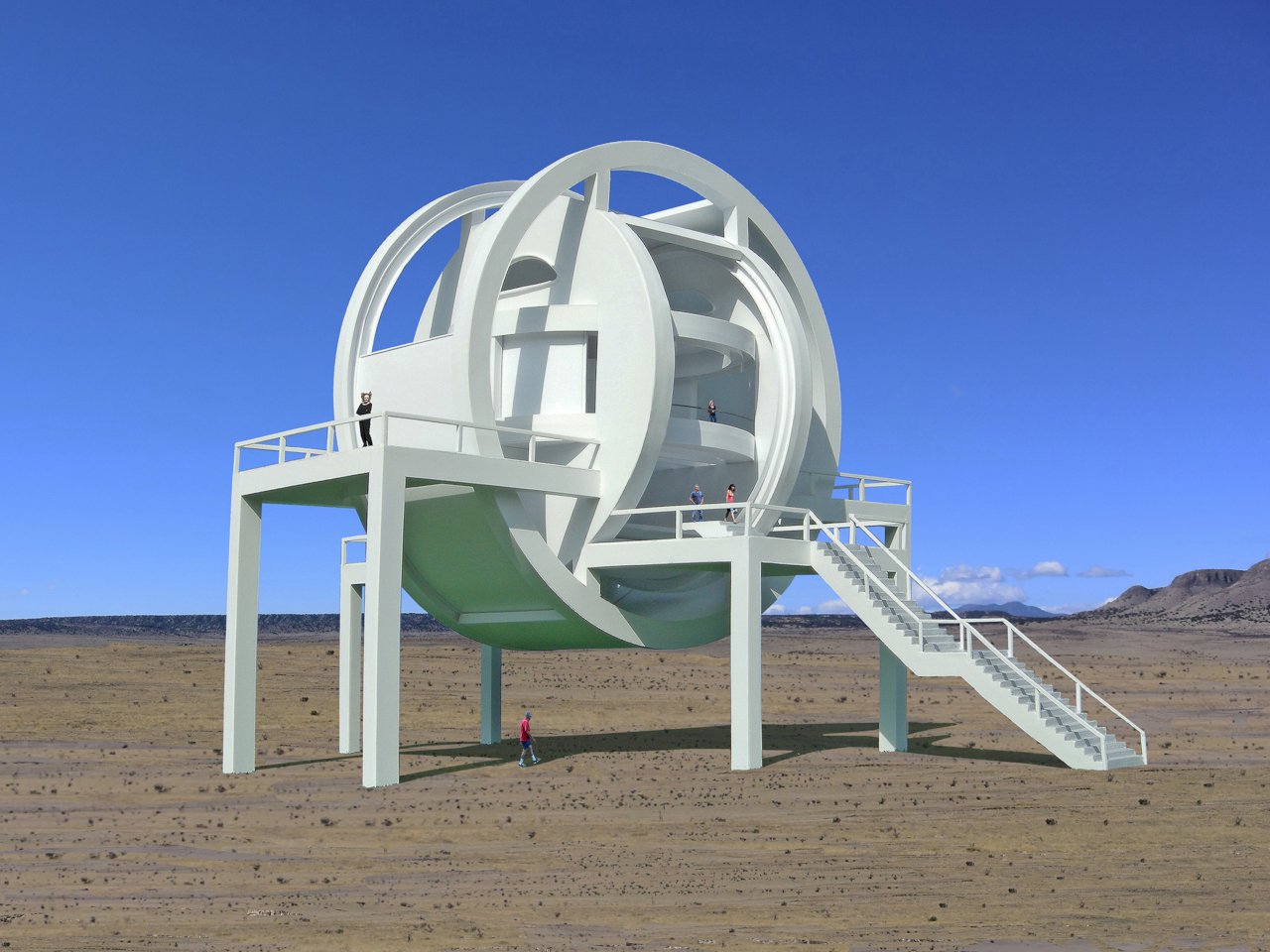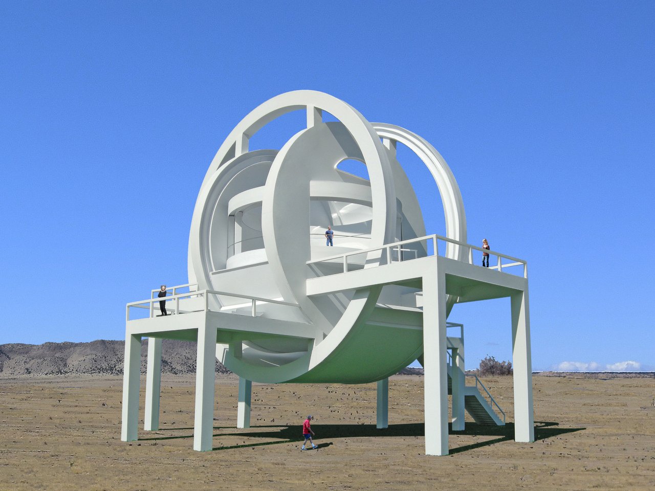 L’observatoire se compose de trois formes cylindriques entrelacées de différentes tailles, supportées par quatre plans horizontaux reposant sur huit colonnes verticales. Chaque cylindre dispose de deux grands panneaux incurvés qui glissent autour des formes dans des centaines de configurations possibles. Le cylindre central est positionné horizontalement, tandis que les autres l’entourent.