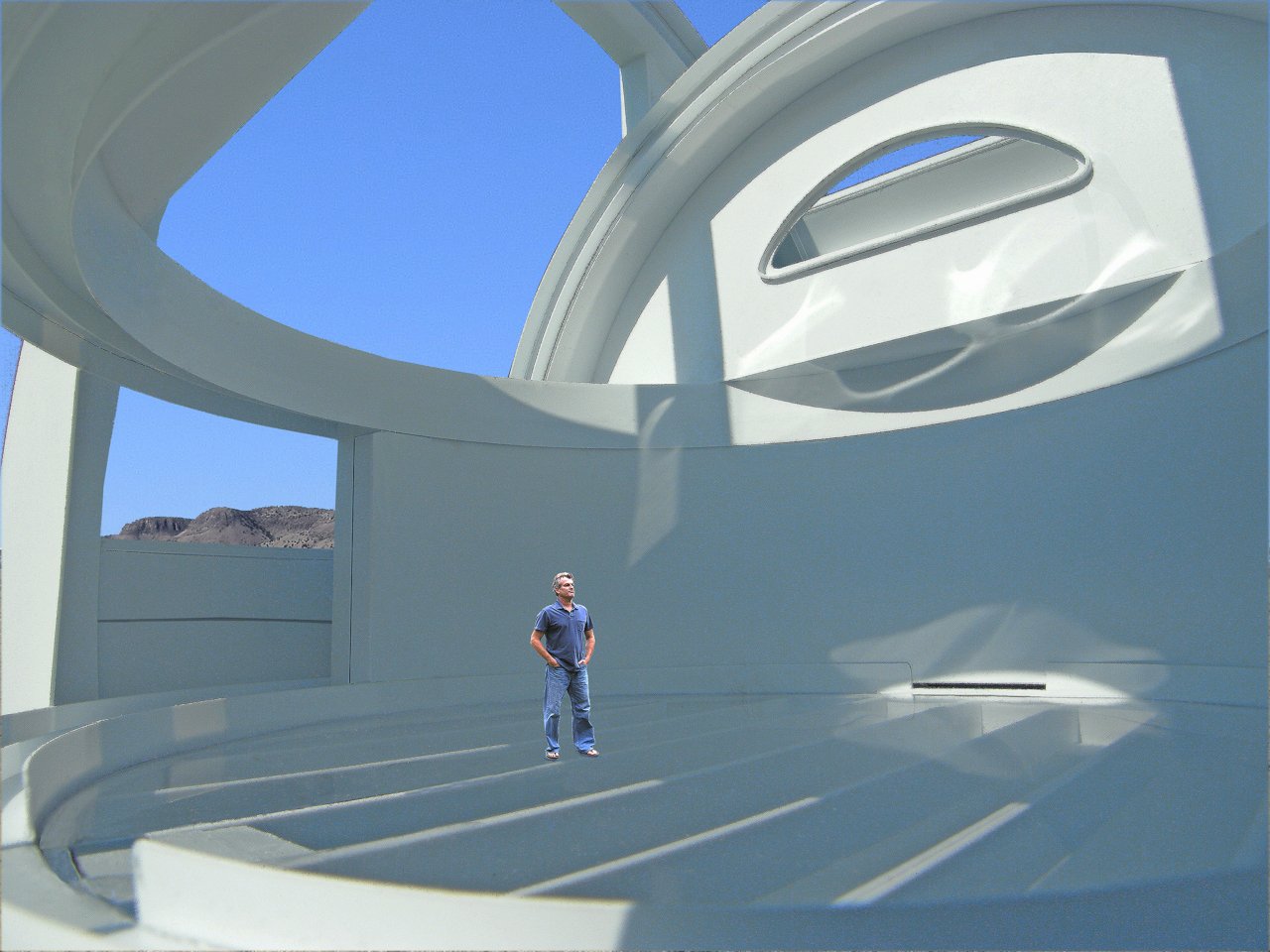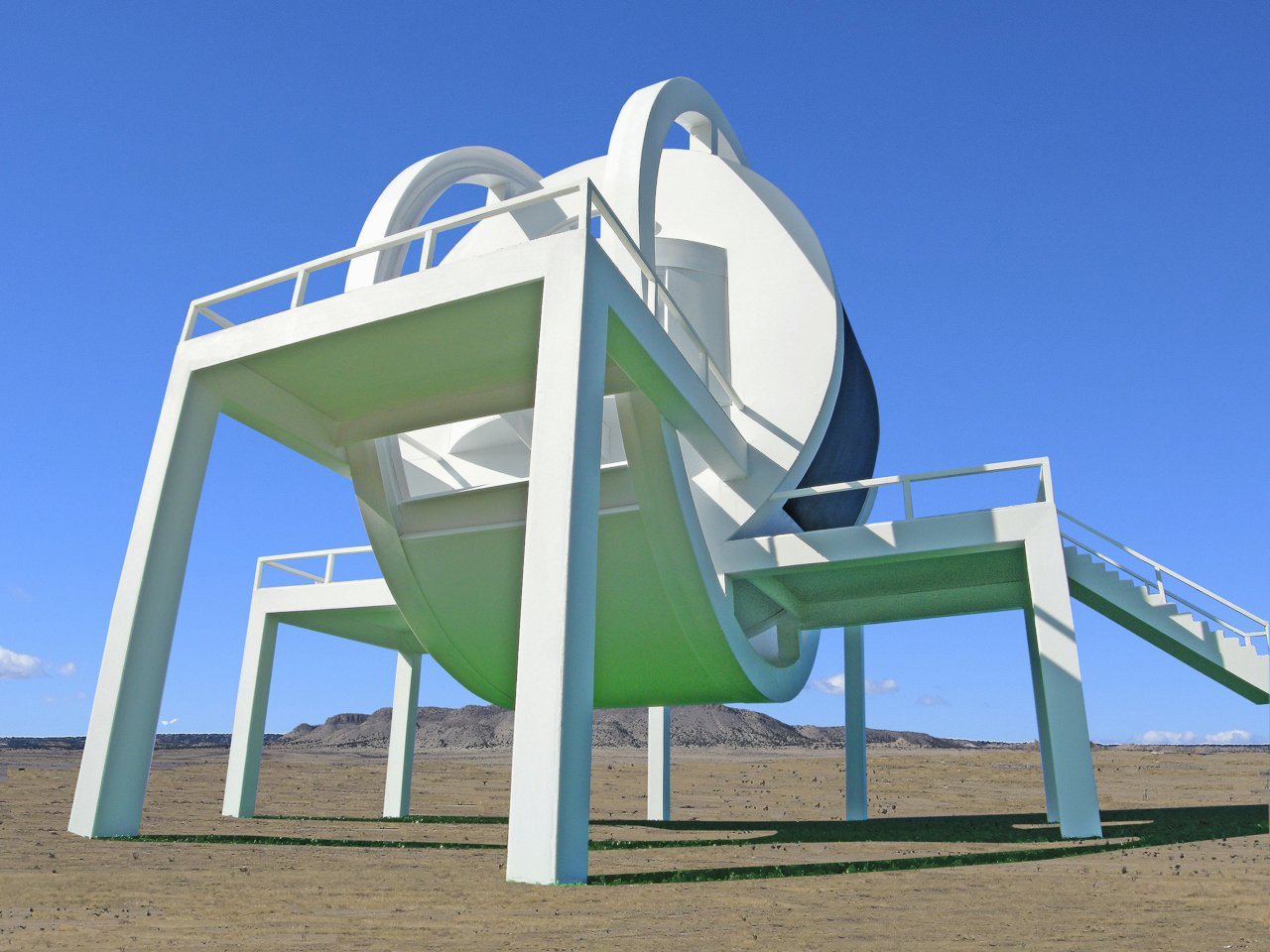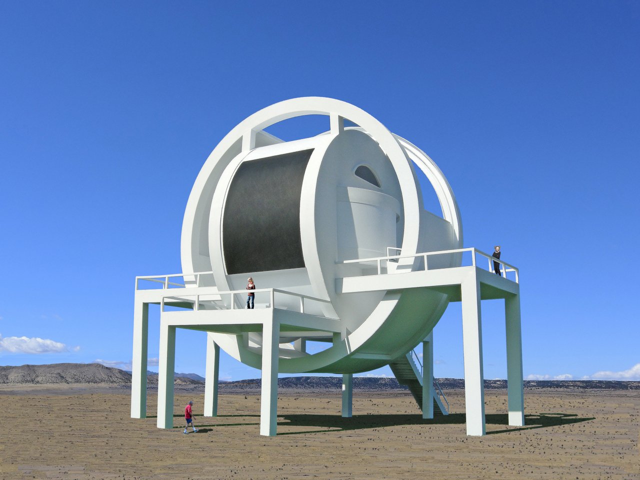 L’impact visuel est saisissant dans les paysages ouverts, avec des surfaces pâles qui capturent et reflètent la lumière changeante tout au long de la journée. Les cylindres entrelacés créent profondeur et complexité qui évoluent dramatiquement alors que les panneaux se déplacent, rendant l’observatoire une structure différente d’un moment à l’autre.