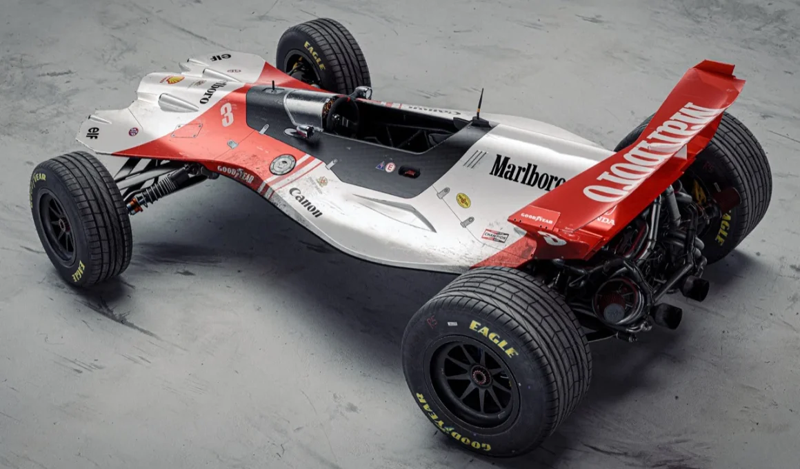 Le modèle principal arbore la célèbre livrée Marlboro McLaren, avec des teintes rouge et blanche, affichant le numéro 3 sur le nez, le logo Honda sur les bords de l’aileron arrière et les logos Shell et Canon, ainsi que des pneus Goodyear Eagle. Pour quiconque connaît l’histoire de la F1, cette combinaison rappelle immédiatement la McLaren MP4/4, la voiture de 1988 qui a remporté 15 des 16 courses avec Senna et Alain Prost au volant. Conçue par les légendaires Gordon Murray et Steve Nichols, cette voiture reste l’une des plus performantes de l’histoire.