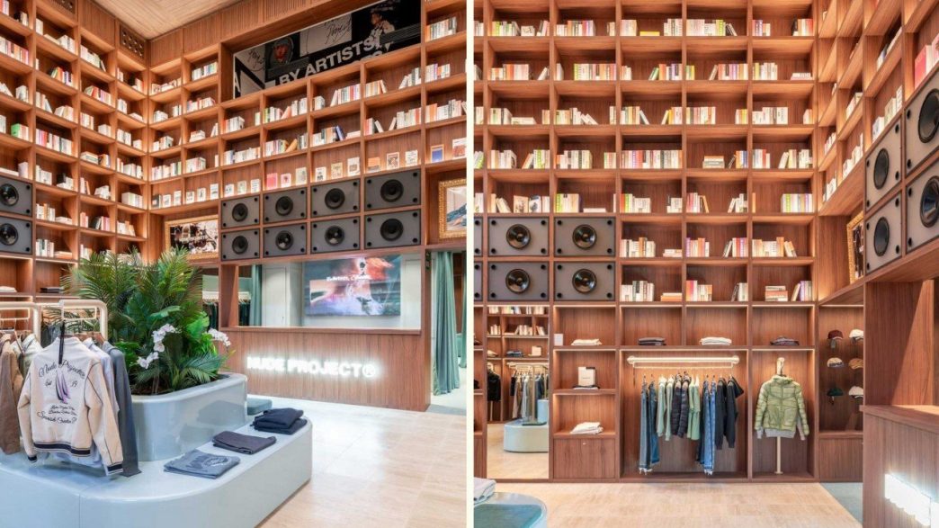 Quand on pense à une bibliothèque, le mot clé qui vient généralement à l’esprit est « calme ». Pourtant, en entrant dans ce lieu, on est accueilli par de gigantesques étagères de livres et un booth de DJ équipé d’un système de son puissant. Cet espace innovant, conçu à la croisée des mondes de la bibliothèque et de la contre-culture, est connu sous le nom de « Nude Library » — un magasin de streetwear situé à Barcelone, en Espagne.