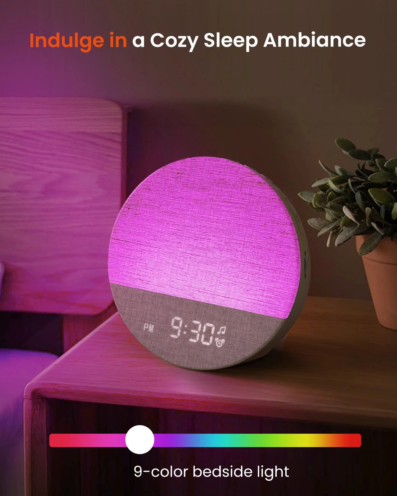 Cet appareil propose 29 sons apaisants, incluant des sons de la nature, des bruits blancs, des bruits roses et des sons de ventilateur, pour un réveil agréable ou pour s’endormir.
