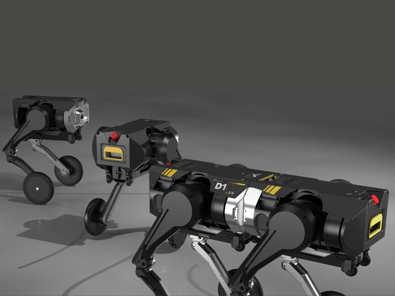 Le D1 utilise une conception modulaire qui lui permet de passer d’une configuration quadrupède stable pour transporter des charges lourdes à des unités bipèdes rapides sur des surfaces lisses, s’adaptant ainsi aux besoins spécifiques de chaque situation.