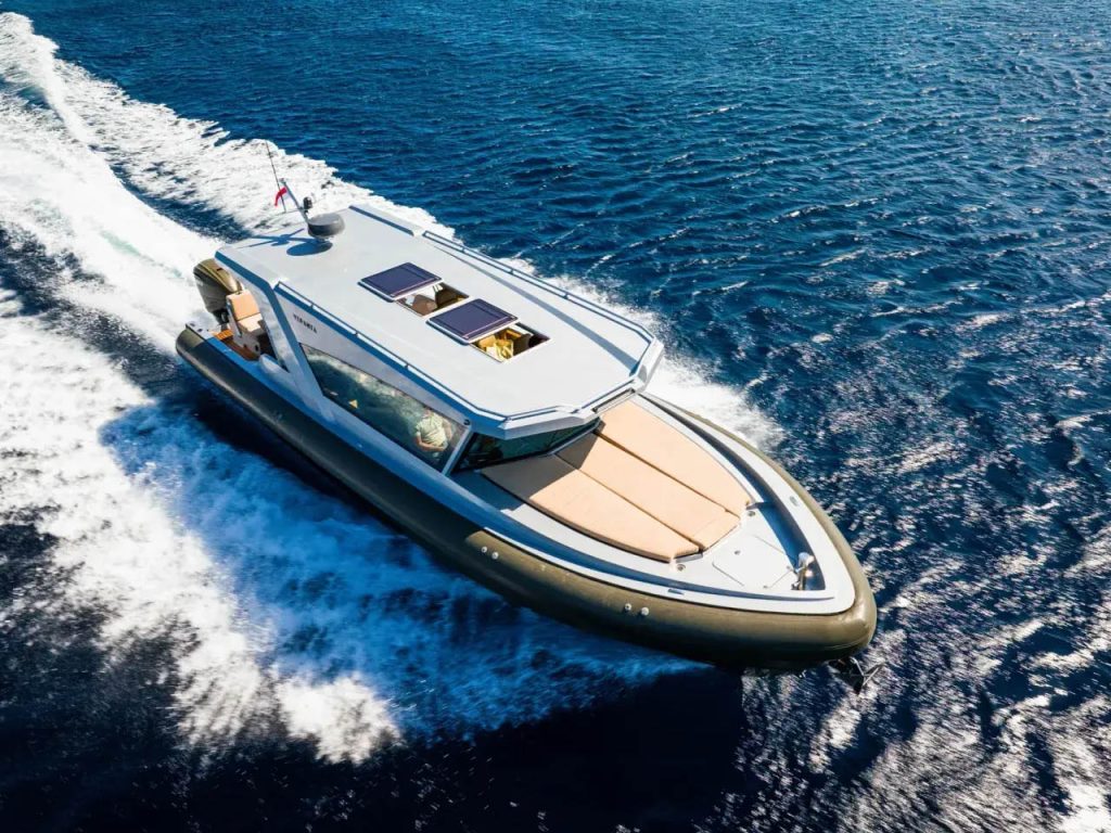 Mesurant 12 mètres de long, le Vedanta Speedboat est conçu spécifiquement pour les eaux indonésiennes. Sa coque de couleur vert marine allongée évoque les formes dynamiques des voitures musclées, tout en intégrant des éléments modernes qui améliorent son esthétique ainsi que sa performance. Les contours angulaires et les éléments gonflables du bateau sont équilibrés pour créer un design à la fois attrayant et fonctionnel, permettant à ce navire de se distinguer dans l’univers des embarcations de luxe.