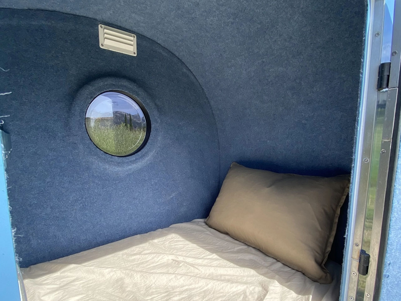 Indépendamment du modèle, la remorque mesure 6,8 pieds de long et 3,1 pieds de large, offrant ainsi un espace suffisant pour un camping confortable tout au long de l’année grâce à une isolation en polystyrène extrudé de 20 mm. De plus, la sécurité est assurée par une porte verrouillable et des stabilisateurs de jambes. Une fenêtre circulaire permet une bonne ventilation à l’intérieur, où un lit et de nombreux rangements vous attendent.