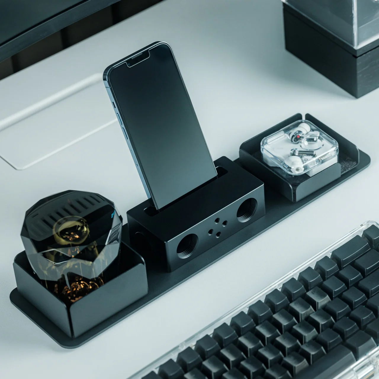 - La qualité artisanale et les multiples options de finition (laiton, acier inoxydable) ajoutent une dimension personnelle qui semble parfaitement à l’aise à côté du matériel d’Apple.