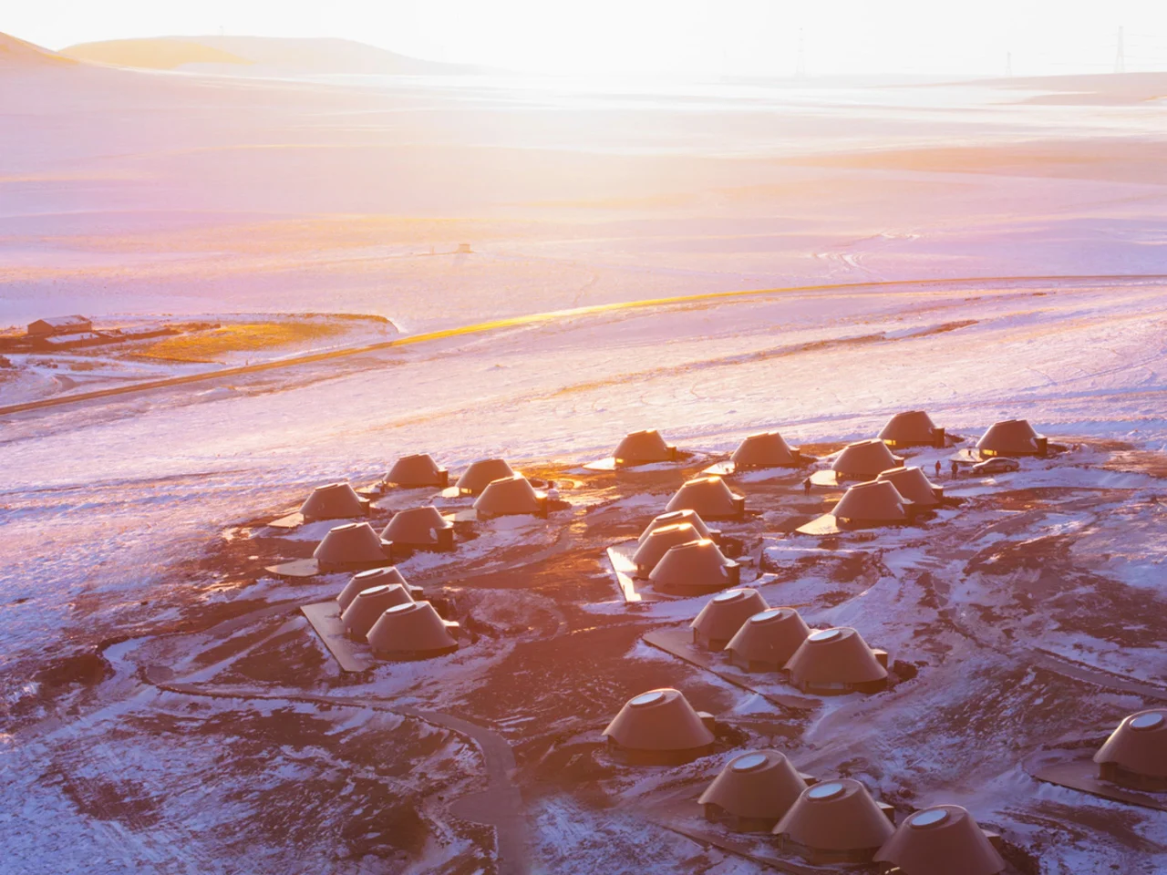 Situé dans la steppe Baiyinkulun de Mongolie intérieure, l’Hôtel Volcano-In des Arrivées se compose de cabines compactes conçues pour s’intégrer harmonieusement dans le paysage volcanique. Avec une superficie de 1 634 mètres carrés, il vise à régénérer le sol en plaçant les suites directement sur des dépressions de sable érodées.