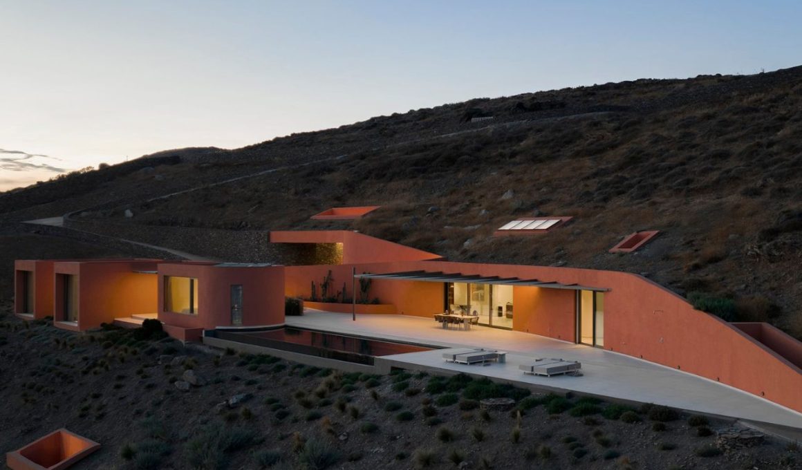Le site, relativement intact, présente un terrain accidenté et des vues dégagées sur la mer. Pour les architectes, cela a signifié appréhender le projet avec sensibilité. L’objectif n’était pas seulement de construire une retraite de luxe, mais de le faire d’une manière qui respecte le caractère existant du lieu. Plutôt que de placer une grande structure sur le terrain, le design enfouit une grande partie du bâtiment dans la colline, créant une architecture qui se sent comme une partie du terrain.