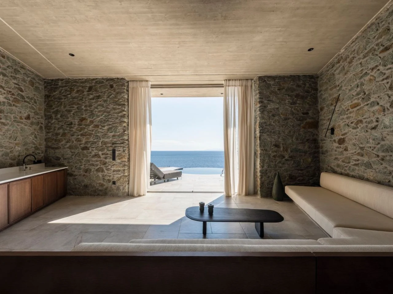 Sur une bande côtière tranquille de l’île grecque de Syros, un nouveau complexe hôtelier semble presque disparaître dans le paysage environnant. Conçu par le cabinet d’architecture Ateno basé à Athènes, Olen est un hôtel de sept suites méticuleusement sculptées dans les falaises rocheuses surplombant la mer Égée. Au lieu de se démarquer comme un objet architectural audacieux, le projet s’intègre silencieusement dans son environnement, permettant au paysage d’être le véritable protagoniste.
