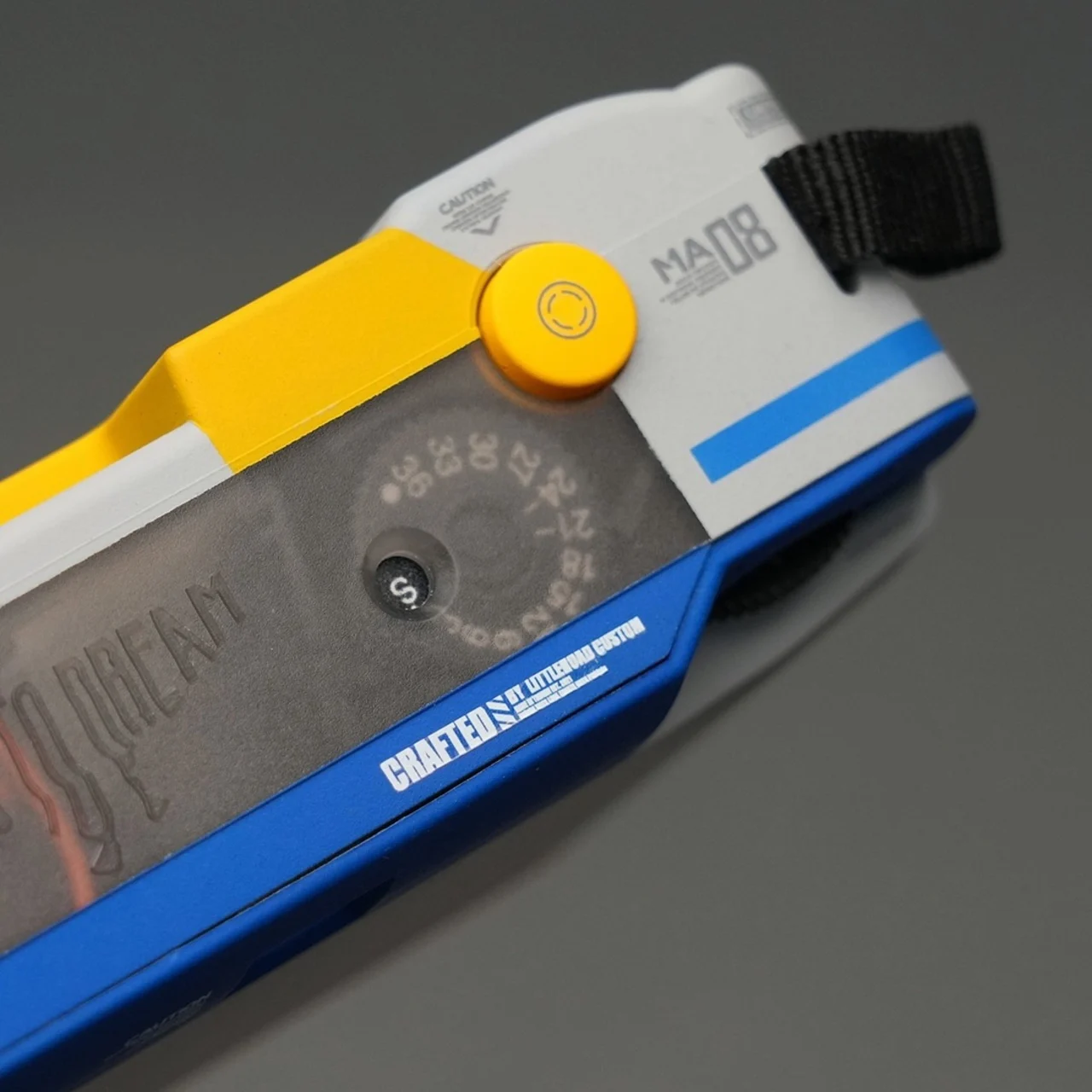 C’est dans cet espace que la Caméra Gundam se distingue. Issue d’une collaboration entre l’artiste David C. Wang de Little Road Camera et IUTD Studios, elle traite une caméra film compacte comme une toile, mettant en avant un artisanat méticuleux digne de la construction d’un Gunpla. Plutôt que d’appliquer un revêtement imprimé ou un autocollant de franchise, l’équipe assemble chaque unité de manière artisanale, traitant le corps de la caméra comme un modéliste traiterait un kit à l’échelle 1/144.
