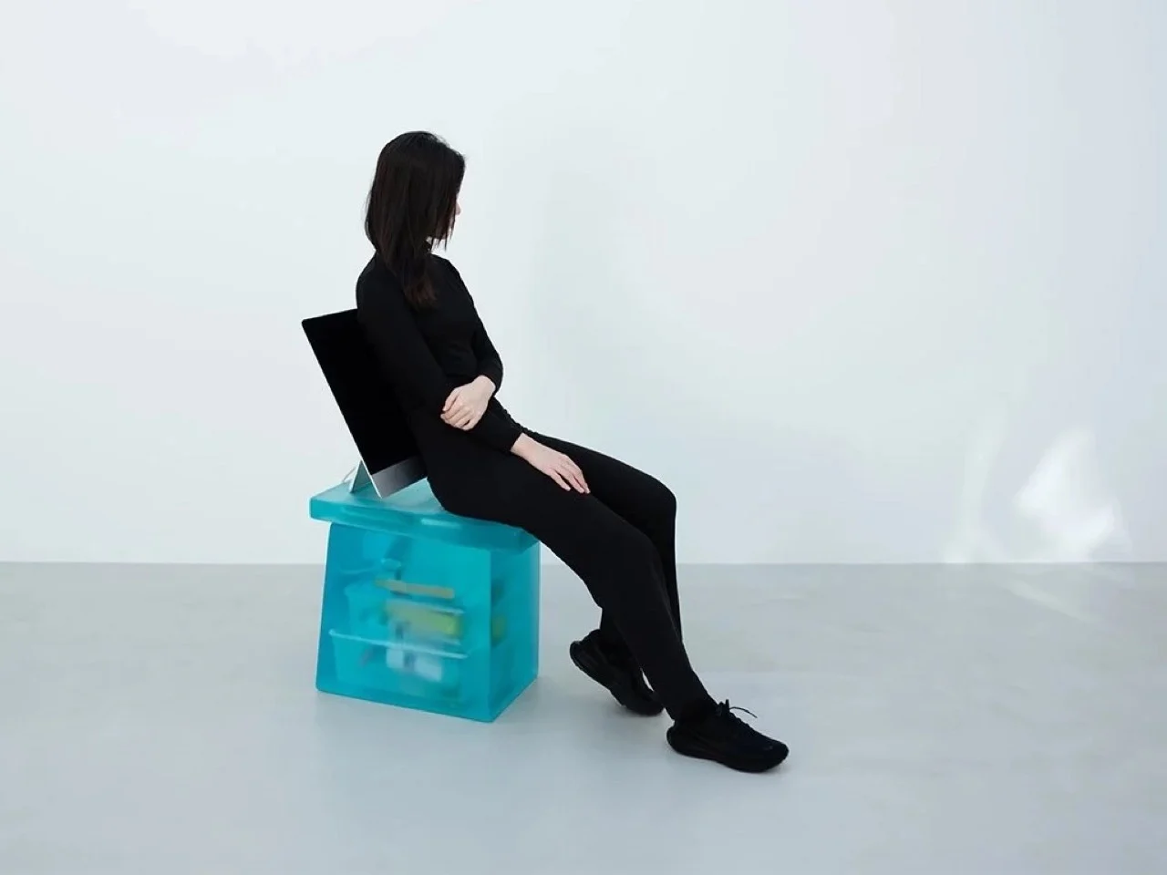 Lim Wootek exploite plusieurs disciplines – conception industrielle, numérique, de moules et CMF (Couleur, Matériau, Finition) – pour créer la Dip1. La délicatesse des bords du siège et la base légèrement effilée empêchent que l’objet ne soit perçu comme un simple bloc. La teinte cyan, évoquant les eaux tropicales peu profondes, donne l’impression que les objets intégrés sont réellement immergés.