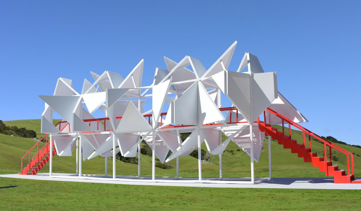 Le cadre pastoral, avec ses collines verdoyantes et son ciel limpide, accentue encore plus le contraste entre le blanc et le rouge. Une sculpture aussi géométriquement dense placée dans un paysage intact se veut une provocation délibérée, et cela lui confère une autorité visuelle indéniable. La structure hypnotisante amène à se demander si l’expérience intérieure, en marchant sur la passerelle entourée d’acier replié de près, délivre la complexité qu’elle promet à distance, ou si le chaos se résout tranquillement lorsque l’on se trouve à l’intérieur.
