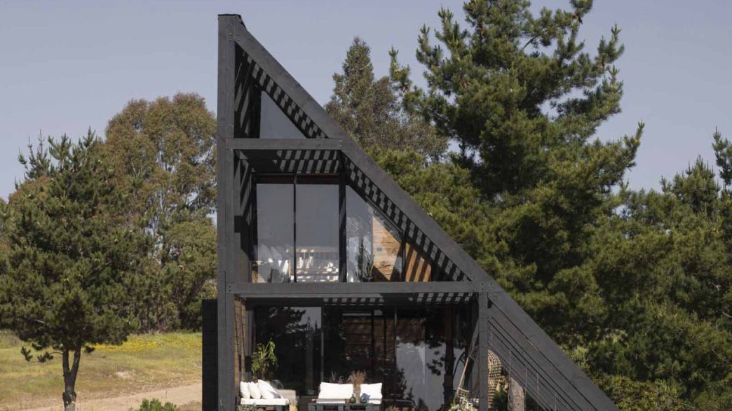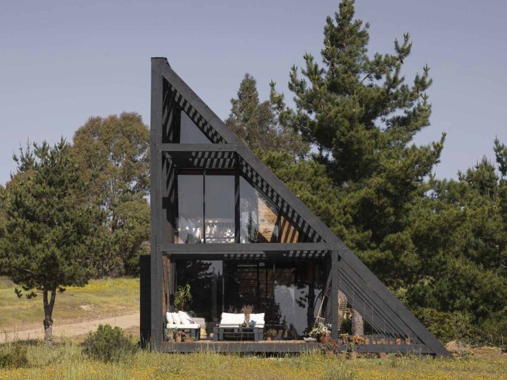 La Maison Wedge, connue sous le nom de Shelter 45, est une réalisation des architectes Gonzalo Rufin Arquitectos et Felipe Toro. Située dans le cadre enchanteur de Matanzas, au Chili, cette région est célèbre pour ses forts vents, ce qui en fait un lieu idéal pour les amateurs de sports nautiques comme la planche à voile et le kitesurf. À seulement trois heures de route de Santiago, cette cabane récemment achevée s’érige sur un terrain montagneux, cerné par une végétation luxuriante et de profonds ravins.