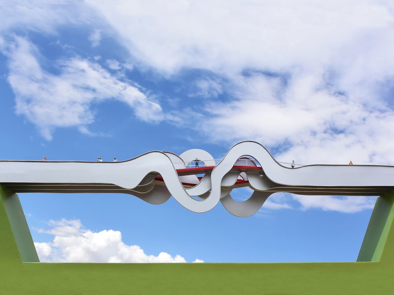 La plupart des ponts piétonniers sont des constructions neutres, des travées droites avec des rampes qui vous conduisent d’un côté à l’autre d’une route. Cependant, certains projets élèvent le pont au rang d’œuvre d’art public, mais souvent comme une simple décoration plutôt qu’un concept structurel. La passerelle en formes d’ondes, conçue par Michael Jantzen, se démarque en imaginant le mouvement lui-même comme le point de départ.