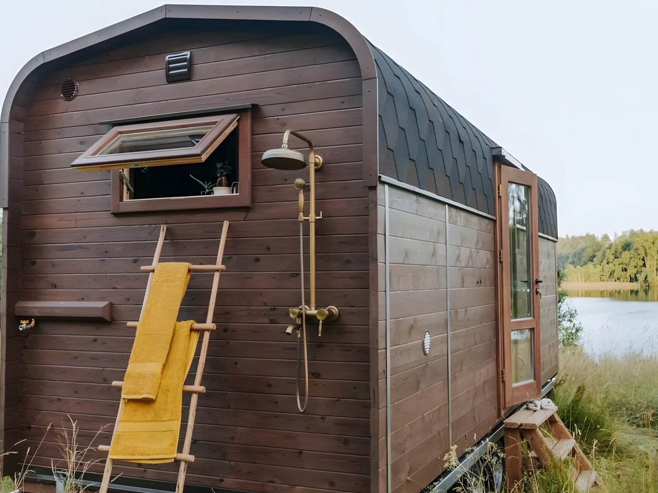 Mesurant environ 6 mètres de long, la Nature Pod repose confortablement sur une remorque à double essieu, parfaitement adaptée aux routes européennes et aux réglementations en vigueur. Ce qui distingue véritablement cette maison compacte, c’est sa méthode de construction innovante. Vagabond Haven a supprimé les structures en bois traditionnelles, les remplaçant par quatre segments de murs intérieurs soutenant des murs extérieurs en ThermoWood de 45 mm d’épaisseur. Cette approche rationalisée réduit non seulement les coûts de matériaux et le temps d’assemblage, mais maintient également un poids global gérable. Le bardage en bois traité et les bardeaux en fibre de verre ajoutent durabilité sans coûts supplémentaires inutiles. De plus, les acheteurs ont même la possibilité d’installer une douche extérieure pour profiter des chaudes soirées d’été.