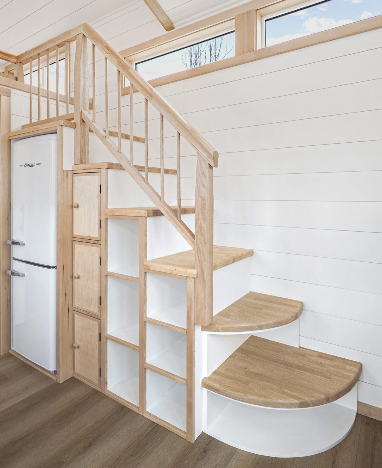Une Maison Tiny Unique Avec Un Escalier Cachant Un Réfrigérateur